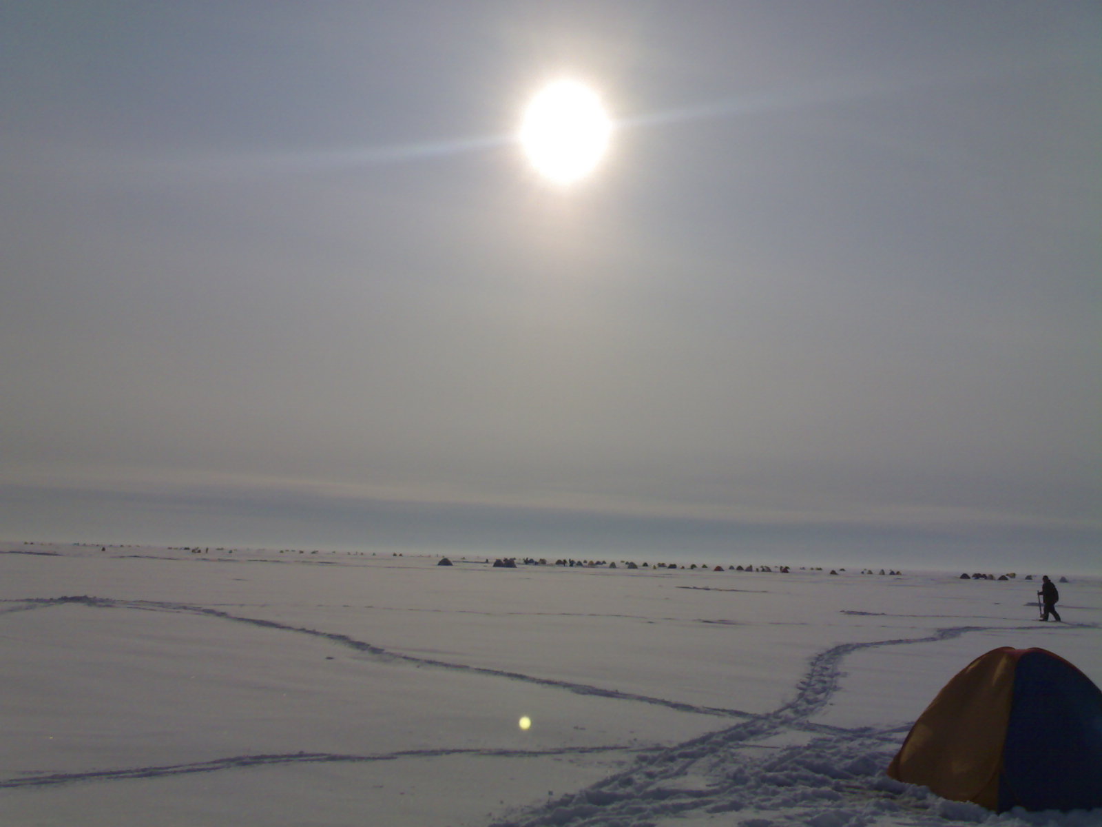 Погодка зато была супер, поход 40мин. с утра по непротоптанному снегу- никакой зарядки и не надо , обновил пешню и палатку.