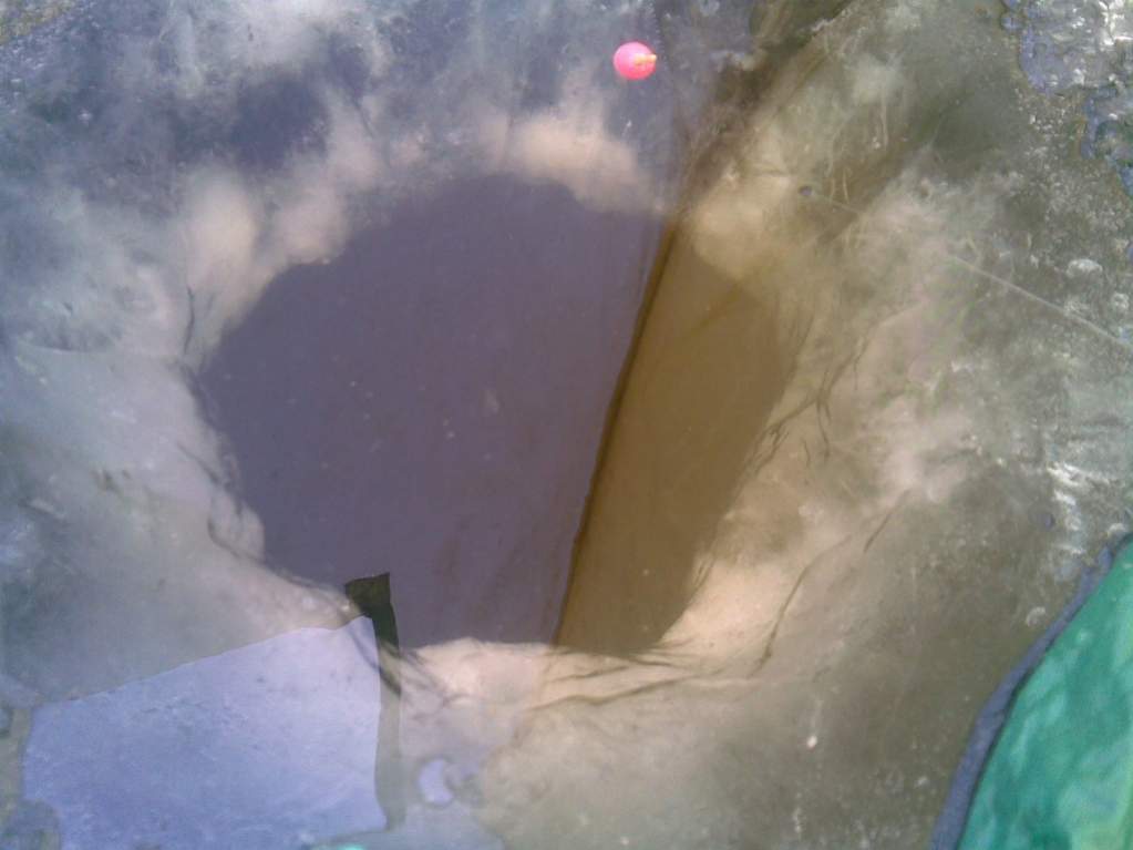 Суббота, Мозолиевка. Устали как собаки... Но обо всем попорядку. Выехали двумя экипажами с Женей Polом около 6ти, с рассветом были уже на полпути к лункам. Нашли Женю и Ко, забурились рядышком и... клев был такой, что не уснуть было сложно. До 11ти не поймано и десятка. Решаем менять место, Женя остался сидеть где был, а мы ушли правее. Посидели полчасика, почесали тыкавку и решили применить научный подход и составить карту глубин. В итоге поблукав, набив десяток лунок, нашли неширокое русло в 7м между двумя шестиметровыми подъемами. Там и сели. И понеслась... Клев был как на черных камнях. Брало на пожованное вымя, которое до конца дня не менялось. Клеваки жадные, у Сани одна и та же таранька хватала на грузовке за оба крючка сразу. Время от времени подкармливал мелкими порциями каши, мотыля и опарыша. Уходили с клева когда уже стало темнеть. Тропу сразу не нашли, а тянуть санки по полумокрому снегу еще то удовольствие... Норму выполнили, воздухом надышались, физзарядку произвели, вобщем день удался!