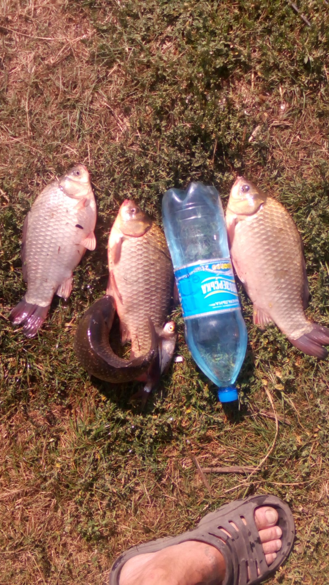 Сегодня ездил в с.Машорино. Приехал в 10.40, встретил знакомых рыбаков, они заняли хорошие места ещё с 6.00 утра. Один вываживал только второго карасика у других двух рыбаков было 2 и з карася с 5.00. В итоге пришлось занять место на отмели вершины ставка, узенькую прогалинку в камыше. Ставок залит по края спускаемой водой, поэтому большинство мест затоплены. Закормив место половиной 5л ведерка с прикормкой (собственного приготовления). наживка опарыш+червь+чесночный кук. Забросил и 2 удилища. После 1ч 30м никакой реакции и ни одной поклевки. Решил перебраться на другую прогалину ближе к (тырлу) это пляжик на котором я всегда ловлю. После 15 минут последовала первая поклевка и дальше тишина. В 16.00 два рыбака занявшие пляжик начали сворачиваться. Соответственно я перебазировался на свое место. В итоге поймал ещё 3 шт карасика и 2шт спортивного ерша до лодошки. У уезжавших было 9 и 10 шт карася. Рыбка не очень хотела ловиться. Но релакс и отдых удался. Жарил сало газовой горелкой над хлебом:gi-gi:, жирок стекал на хлеб, потом хлеб поджаривался с верху, вот быстрый и горячий перекус+ чай настоянный в термосе:zachet:. Всем спасибо за внимание и НХНЧ