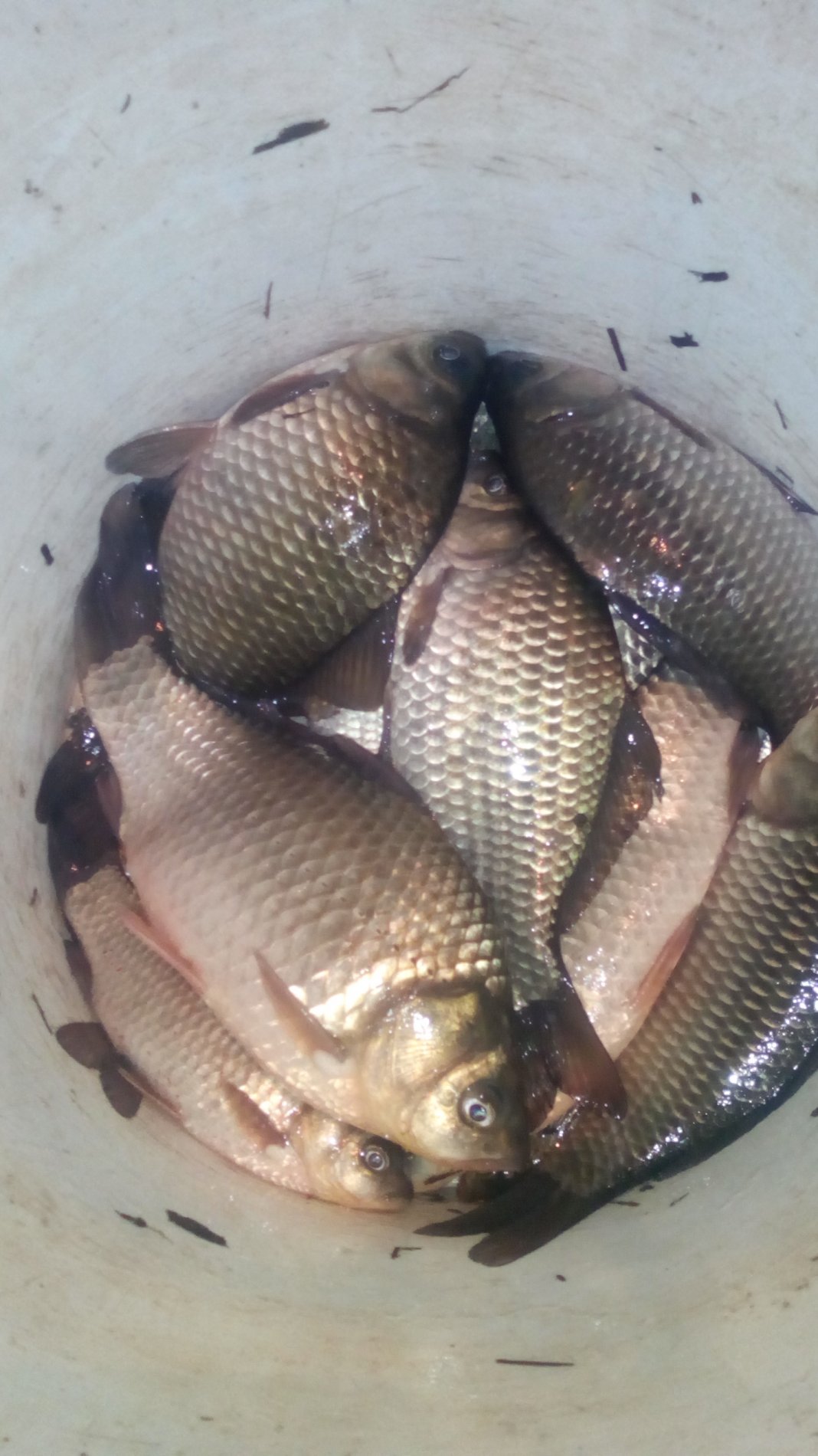 Сегодня по работе планы немного изменились и день оказывается свободным. В 9.00 созвонился с знакомым и решили проскочить на 2 оё Диковский ставок. Выехали в 10.10 на месте в 10.45. В 11.30 оснастка в воде. 5 удилищ и пружины где 1 где 2 крючка. Прикормка самодельная, наживка червь + опарыш. Карасик ловился мельче чем в прошлую поездку, иногда попадал 250-300 грм. В итоге до 17.00 поймали по 9 шт карасиков и по 8 шт красноперки для котеек. Всем спасибо за внимание и НХНЧ