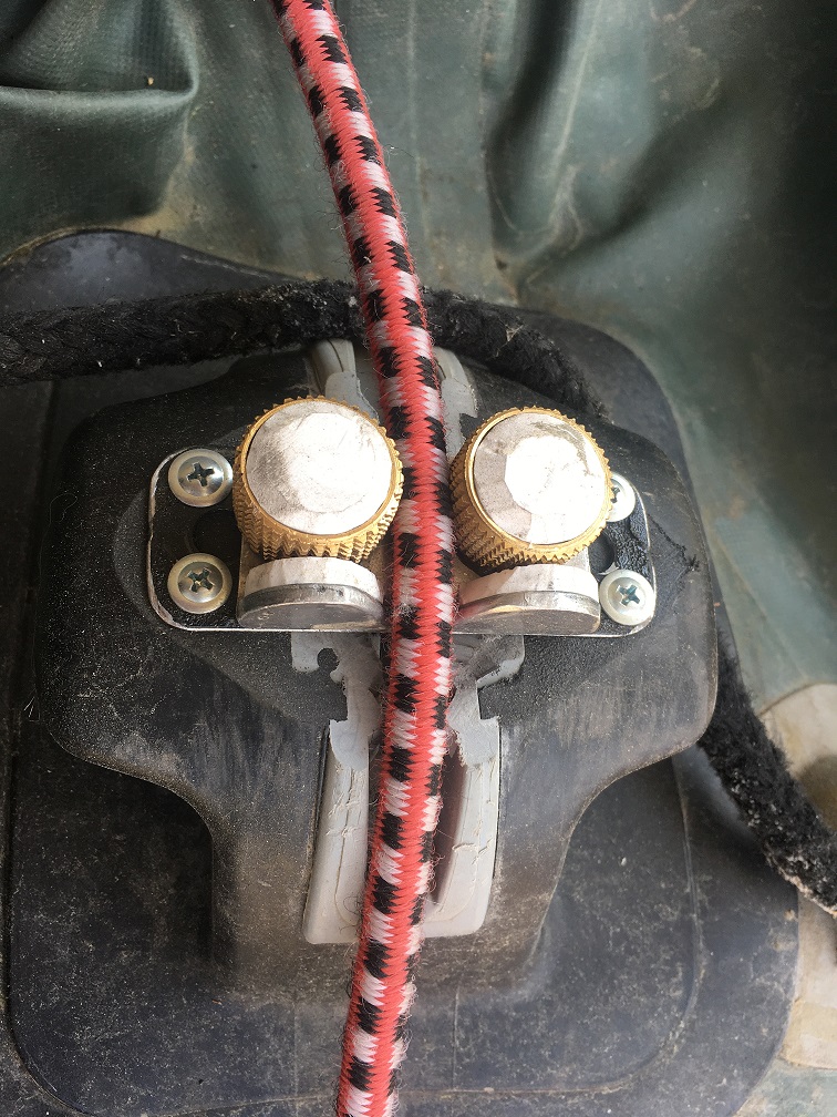 В принципе это похоже на альпинисткую страховку. Так как эксцентрики соприкасаются то можно использовать фал от 5 до 12мм. У меня штатный 10мм Высота роликов 15мм