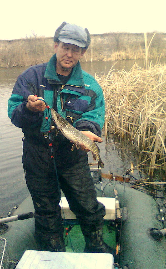 сегодня с 9 до 13 ( уехали раньше по причине ,какойто баран поджог камышь и загорелась трава ,хорошо ветер не в нашу сторону но крутило побоялись за машину)у Баловки поворот в лево от моста выше тичения метров 200 ...тичение ..ветер мусора несет очень много .. ветер поройне дает положить воб туда куда хочеться, пару раз нагибали деревья ..благо на лодке не пишлось смимать штаны ))) все новые цацки (купленные пока вода была твердой )молчали вестрелил только Бальзер и тот что я ему поменял окраску баловался с ним учитывая невысокую стоимость )))) нашего брата было много ..видно народ соскучился ,помохать палкой и покрутить мясорубку и и новые приманки по полоскать )))) у кого спрашивал у всех ОП...