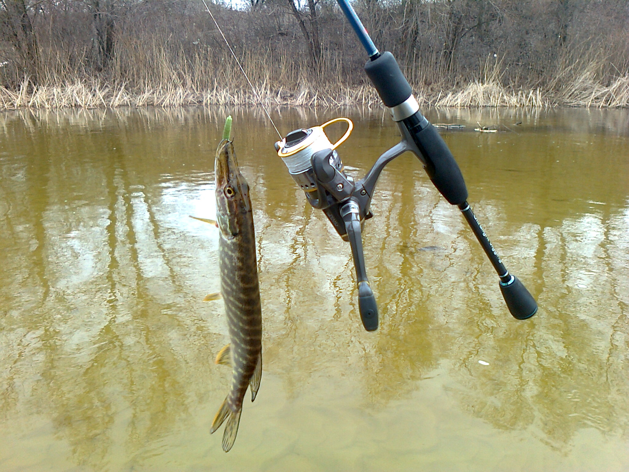 Сегодня, новое русло Орели в районе с.Баловка. с утра и до вечера . первые поклевки начались только после обеда, два досадных схода непонятно чего ( вроде не щука)... потом влетело несколько окушков с палец на микруху... и часов в 5 начала брать щука неплохо. у меня на все ту же микруху + 2 гр чебурашку садится килошка, благо не успела перетереть шнур ( без поводка ) . Потом еще один сход небольшой у камыша. у товарища одна в активе и один сход, это все в одно и тоже время с 5 до 6.30. Проходили мимо еще два рыбака, взяли одну до кило и несколько сходов помельче. Рыбалка удалась на славу. Ходил с обрывов выглядывал голавлей под кустами и деревьями - кучу мелких, больше 100 гр так и не увидел... рановато еще... ну ничего , недолго ждать осталось.