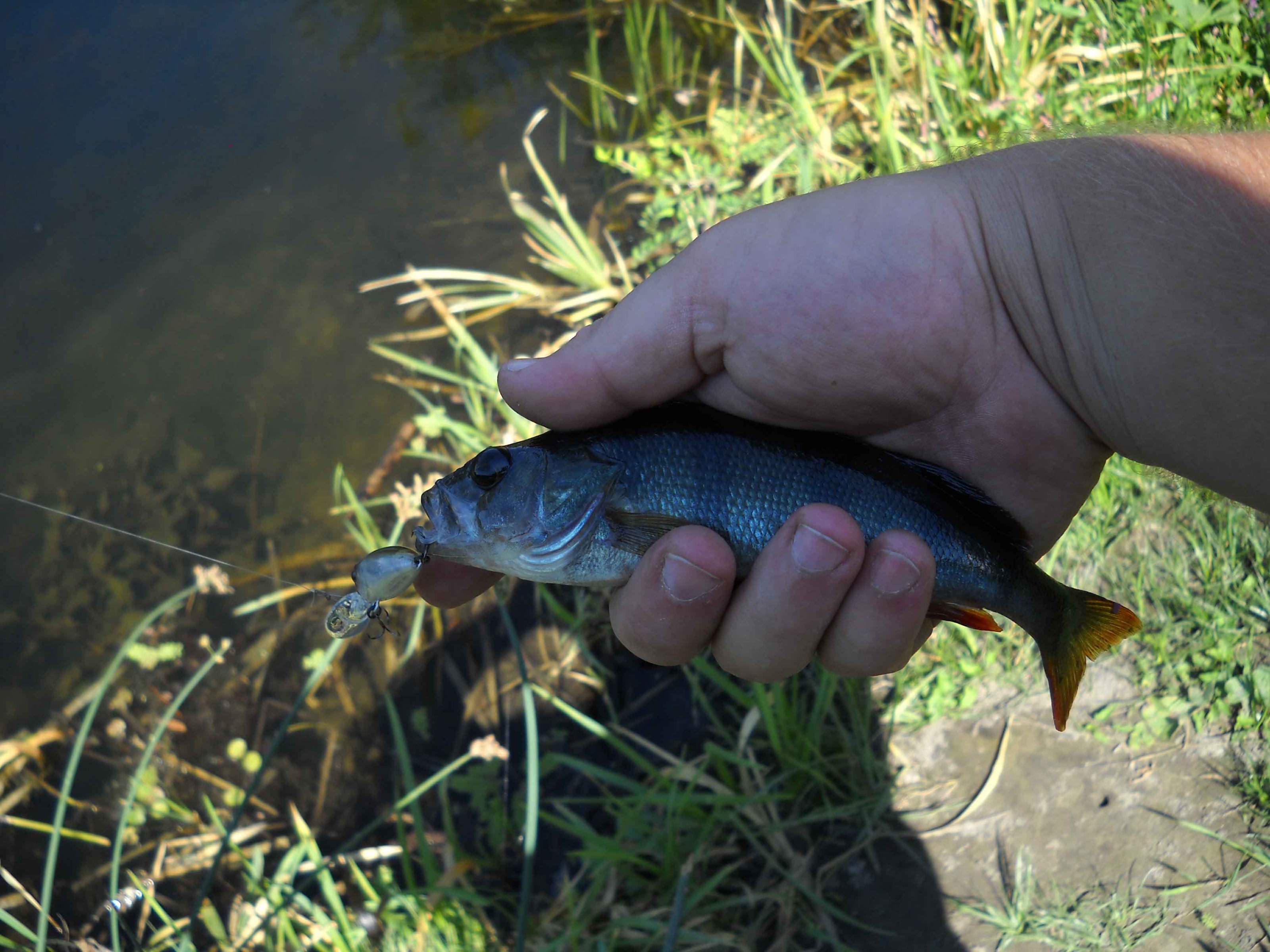 Пока ловили- спин лежал забытый рядом.. Вспомнила про него, стала кидать и хорошенькая красноперка взяла на юзури л-минноу! и еще, о счастье! наконец-то разловила голавлем винницкого головастика! Он лежал-валялся уже второй сезон, думала в наших местах он и не работает. Голавль выскочил из-под кустов, погнался и взял почти в самом начале проводки.