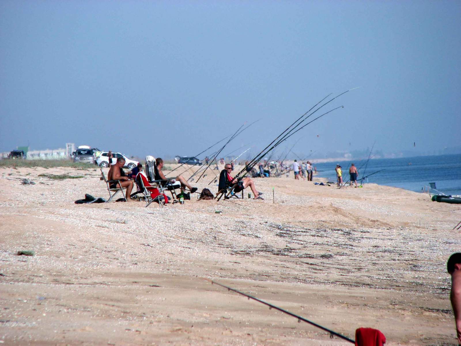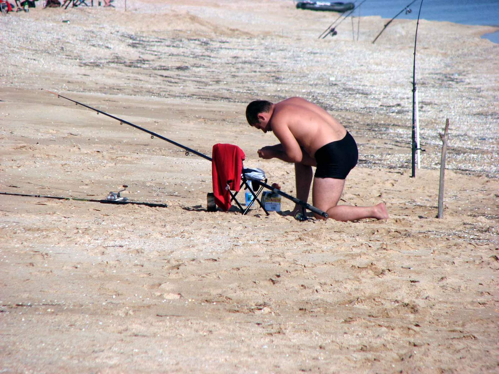 Расскажу немного о своих снастях. Брал 2 фидера: 420 см с тестом 145 грамм и 390 см с тестом 100 грамм. Использовал в основном первый. Катушка карповая четырехтысячка, что то из дешевеньких - польская, т.к. на море снасти быстро приходят в не надлежавшее рабочее состояние. Леска карповая 0,35 мм около 200 м и шок-лидер с плетенки 0,3мм. Снасть: вставка из лески с 2 поводками. Расстояние, что бы между собой не путались, в конце груз-ракета 80-100 грамм. Крючки с длинным цевьем, на которое надевается овальный пенопласт, окрашенный в красный цвет. Забрасывать приходилось далеко, шли в брод по грудь до первого переката метров 30-40 и с переката заброс метров на 100.