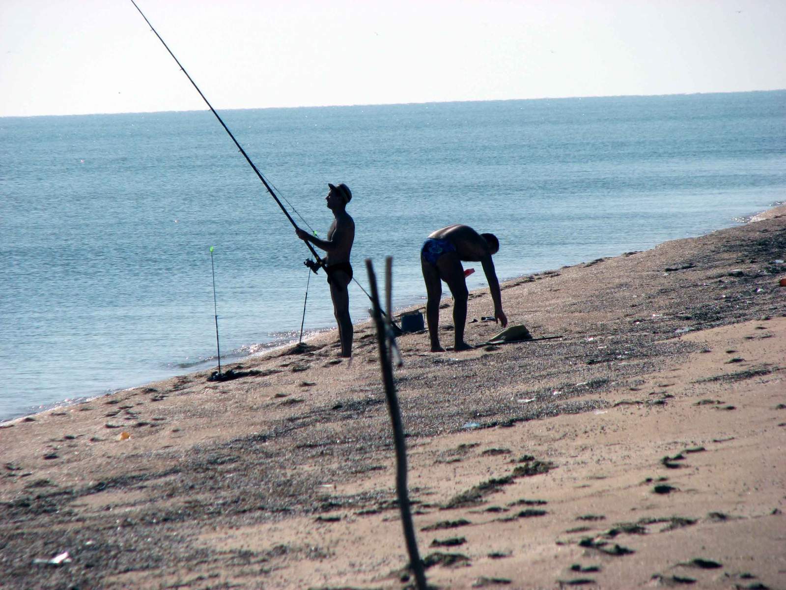 В качестве наживки использовали лиманского червя, которого капали в копанках, образовавшихся в результате строительства дамбы. В этих водоемах обитали бычком и креветками, правда, небольшого размера. Они, тем самым, компенсировали нам слабый клев пеленгаса. Днем ловили креветок и сразу же готовили с укропчиком, петрушечкой, перчиком и большим количеством соли на таганке (с пивом:присоединяюсь: ням-ням). Бычок ловился на поплавочную удочку на эти же вкусные креветки.