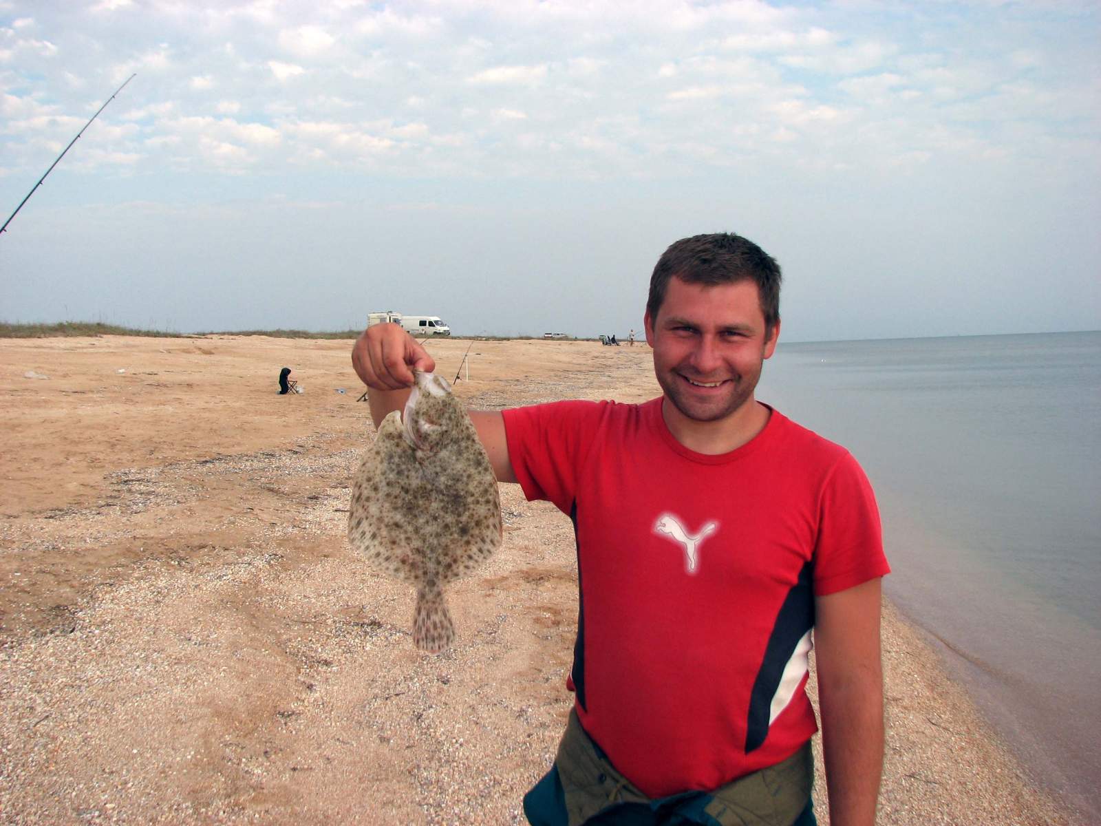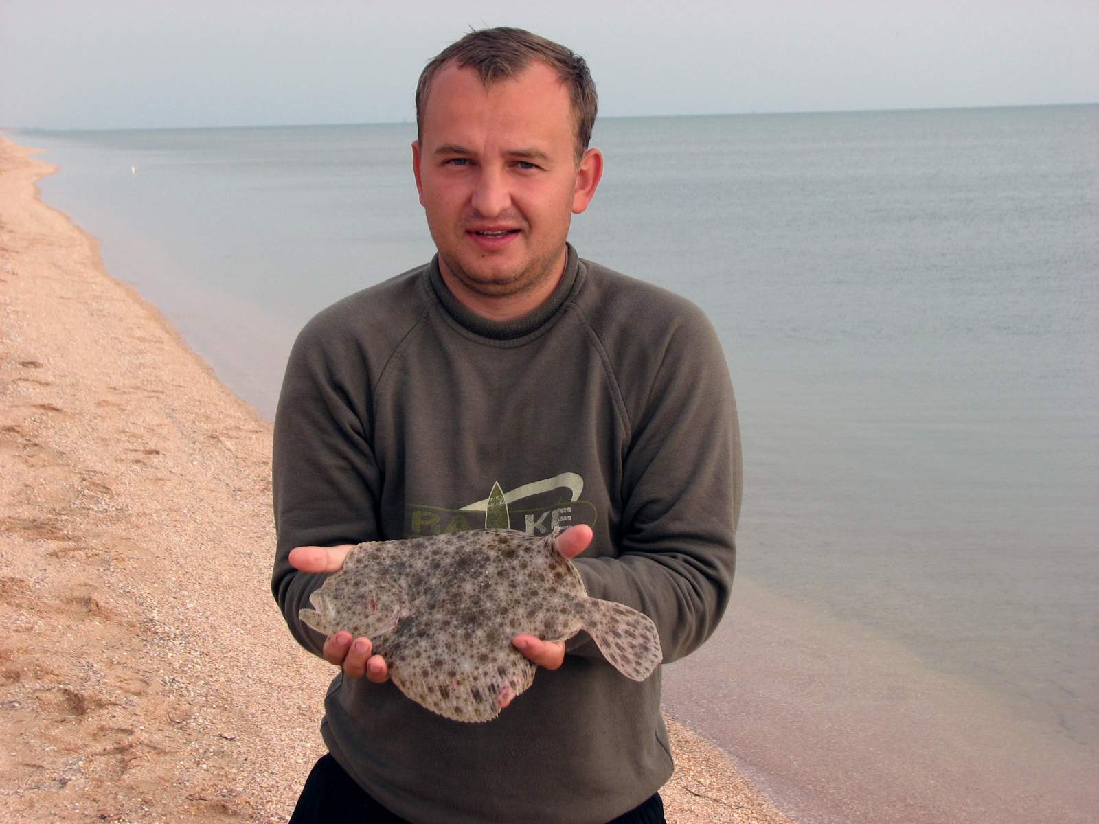 По утру, прогуливаясь по бережку, наткнулись на камбалу. Когда присмотрелись, камбала подошла к берегу и охотилась за мальком, который плескался у самых ног. Вооружившись ножом, удалось поймать несколько штучек.