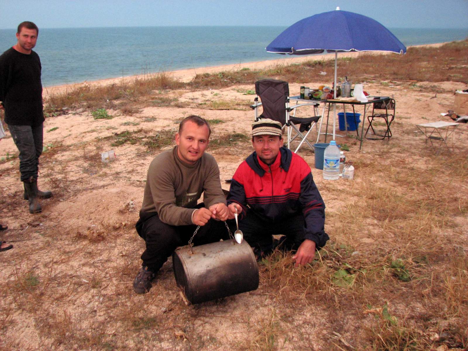 Каждый год (по возможности), в сентябре мы с друзьями идем в баню… ой! )))) ездим на азов за пеленгасом. Хорошая штука Интернет! Благодаря ему, можно не попасть в ж.. ))) плохую погоду. Начиная с первых чисел сентября, три недели дул очень сильный ветер (7-11 м/с). Песок приобретал свойства пескоструйки, от него нигде нельзя было спрятаться. Он был, и в еде, и в палатке, и в снастях, и в ушах… но, у нас, то есть Интерне. Видя, что ветер стих, собираемся в течение одного дня, благо уже как 3 недели «сидели на чемоданах», и в путь. Как оказалось в дальнейшем, с погодой нам очень повезло. Ветерок был не более 3м/с, солнце :solnce2:было всегда, иногда облачность. Температура воздуха 24-26 град.С. Вода, по ощущениям, 20-22 град.С. Солнце воздух и вода – наши лучшие друзья!!!!!:ura: