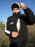 В последние дни перед первыми заморозками (31 октября, +2 ºС, но стрекозы еще летали) выбрался с племянником на речку. Начали ловлю с сентябрьского места на глубине (выход из переката). На 33 L-minnow (S) от YO-ZURI была лишь одна поклевка, удар не сильный. Начали подниматься на перекат, меняя воблерки. Возле нависших над водой деревьев появились поклевки мелкого голавля. Лучше всего работали воблеры Baby pro 25 от Strike pro желто-зеленых цветов и "кузнечик" от River2Sea. Вся рыба поймана на перекате.