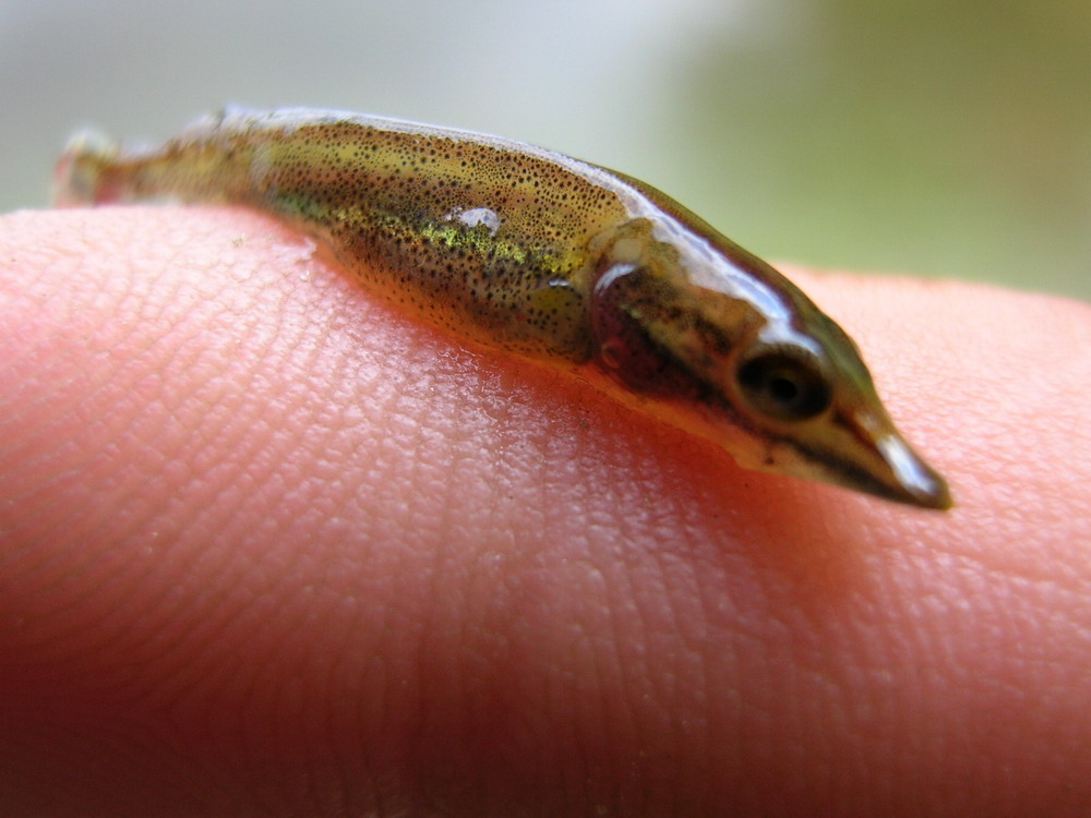 Щучка, как видим отнерестилась, вот такого малька очень много, что радует.