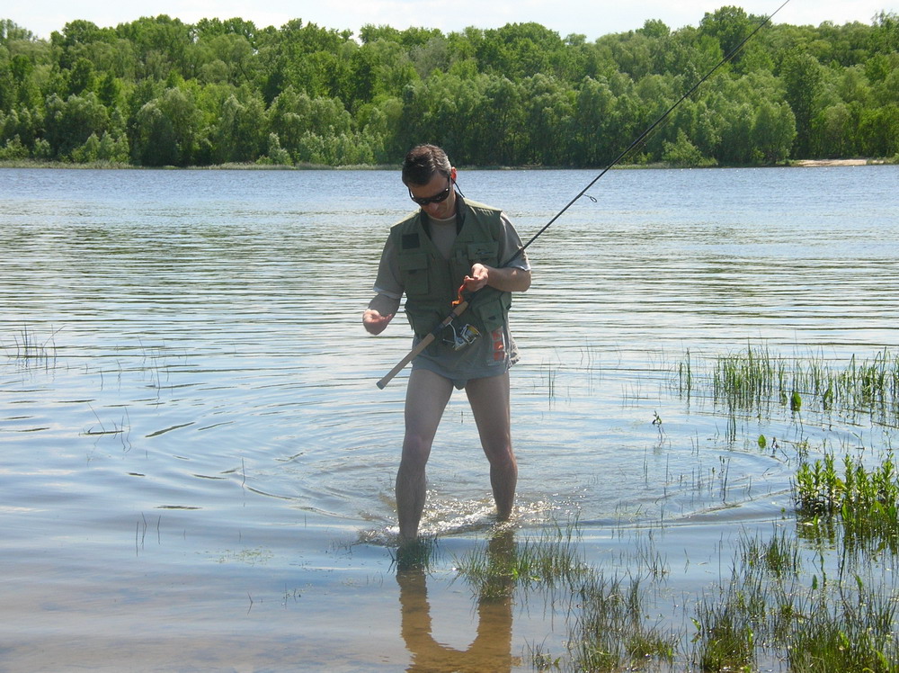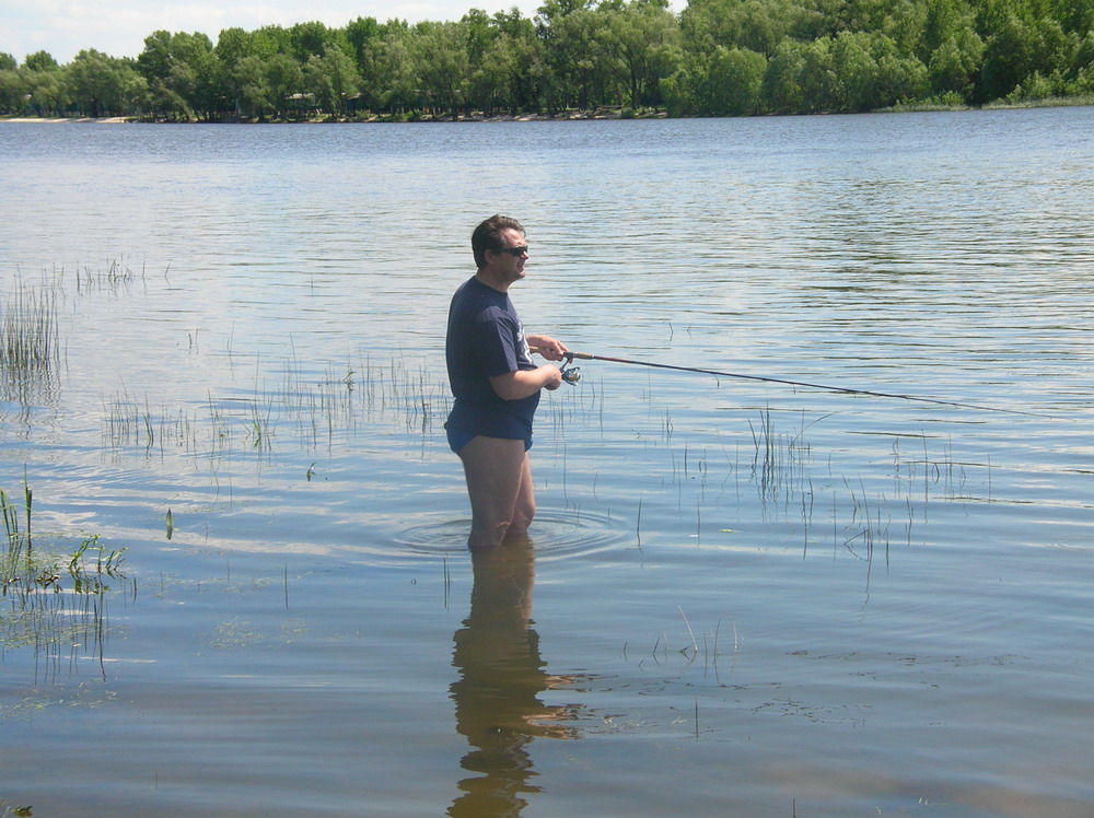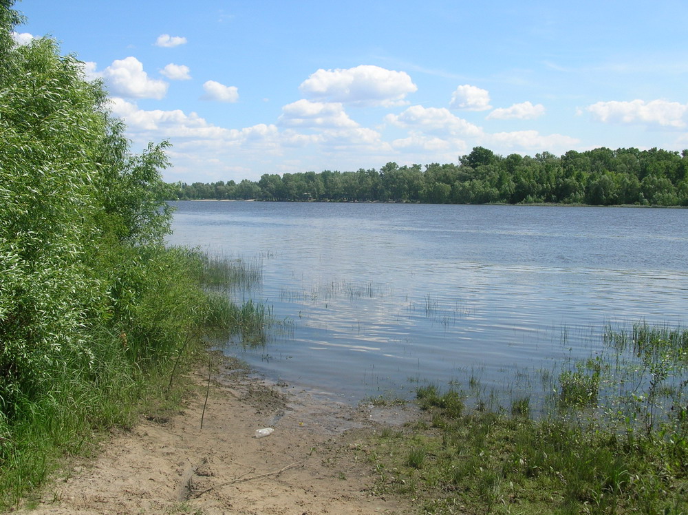 Сегодня были на Десне. В основном ездили покататься на велах :) Но взяли с собой одну поплавочную и один спиннинг. Были в устье то ли старицы, то ли притока - если смотреть по карте, прямо над Троещиной и примерно на уровне Зазимья, километров несколько от города.