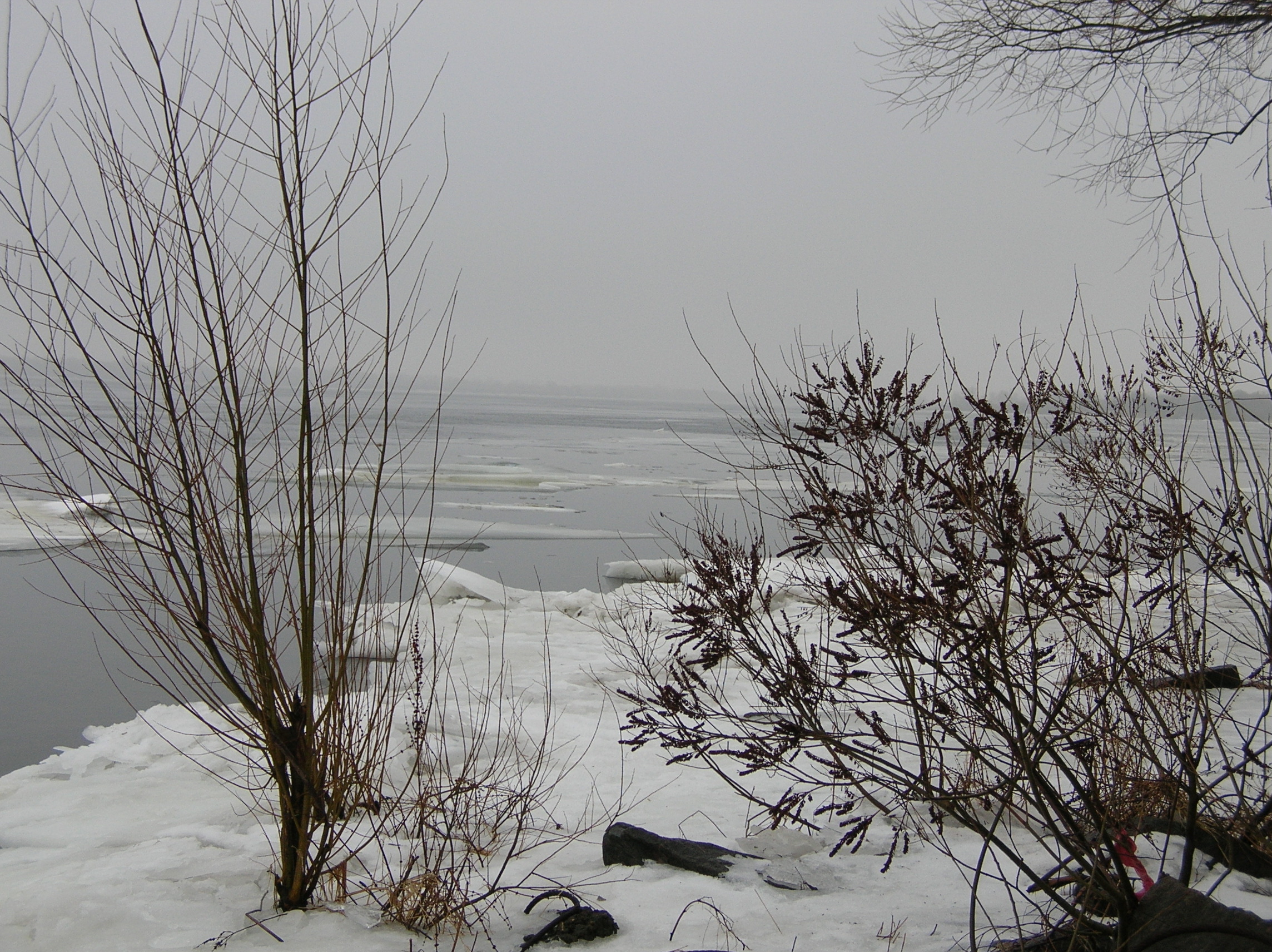 Вообще очень красиво сейчас на открытой воде. Где-то лед карнизами, шуга, треск. Вода очень чистая.