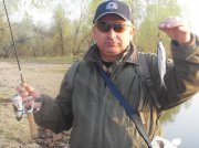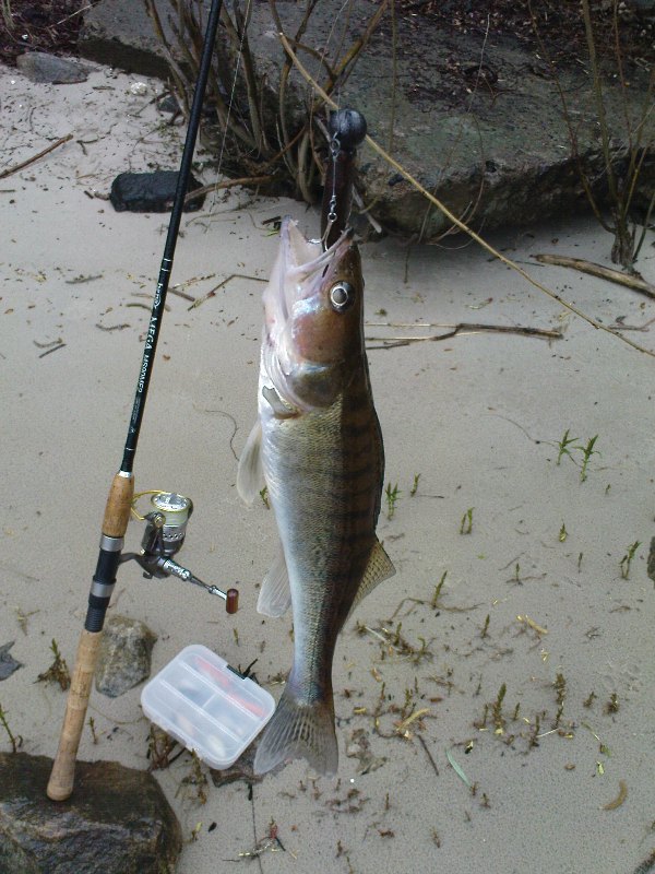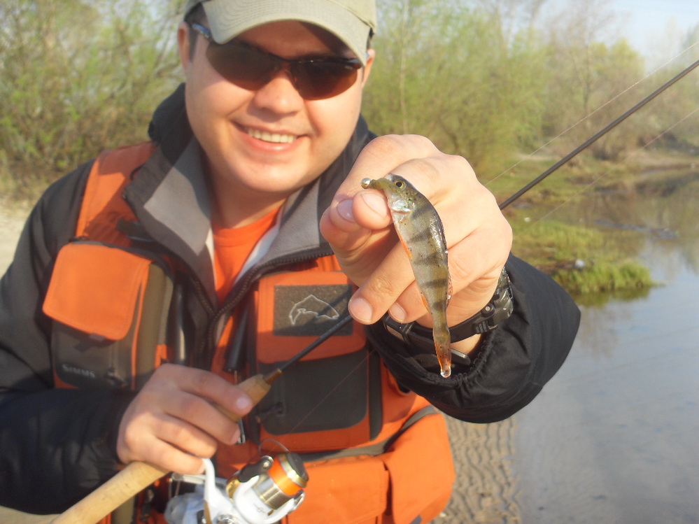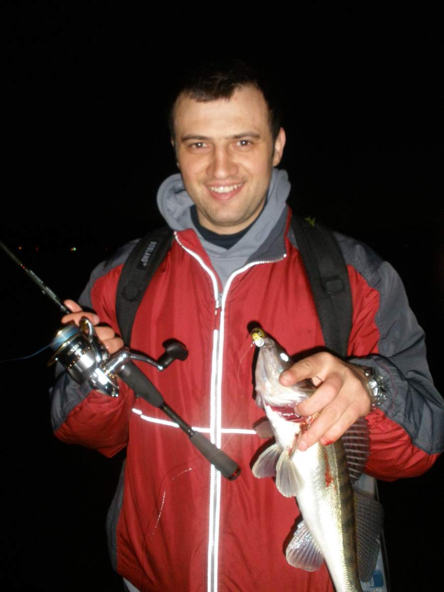Выскочили вчера вместе с Максом(Макс Виняр) ниже ЮМ испытать мое новое приобретение в виде катушенции. Погода конечно была получше чем позавчера, но в руки все еще холодновато. Джиг был в полном игноре и не только у нас. Решили остаться на вечернего судачка. Пробовал разные миношки - ноль, ни тычка.Решил поставить ручную работу неизвестного мастера:gi-gi:. Пара забросов-ничего. Тут Макс попросил подержать в руках сей инструмент и хоть крутнуть разок, короче делаем обмен на время. Не успел я от него отойти как услышал у него приятный звук фрикциона:ura:. Честно говоря не ожидал такого поворота событий. делаем фотосессию, меняемся комплектами(я ему дал свой запасной воблерок). Делаю первый заброс и цепляю малыша, ну думаю ща пойдет. Ага как бы не так, дальше к нам присоеденился ОП(Петрович):gi-gi:.