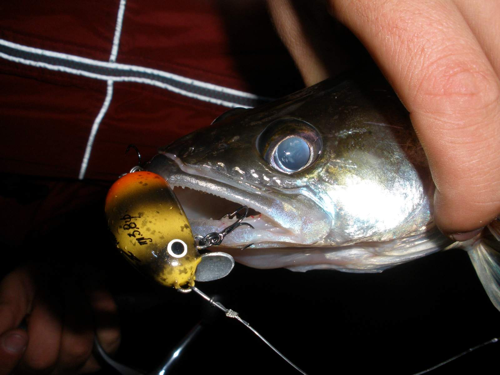 2. У судака, взявшего на воблер (уже по темноте) в желудке был просто огромный бычок. Не понимаю, что заставляет рыбу выходить под поверхность и атаковать приманку на полный желудок? Может то, что и меня заставляет ловить его? -Интерес?