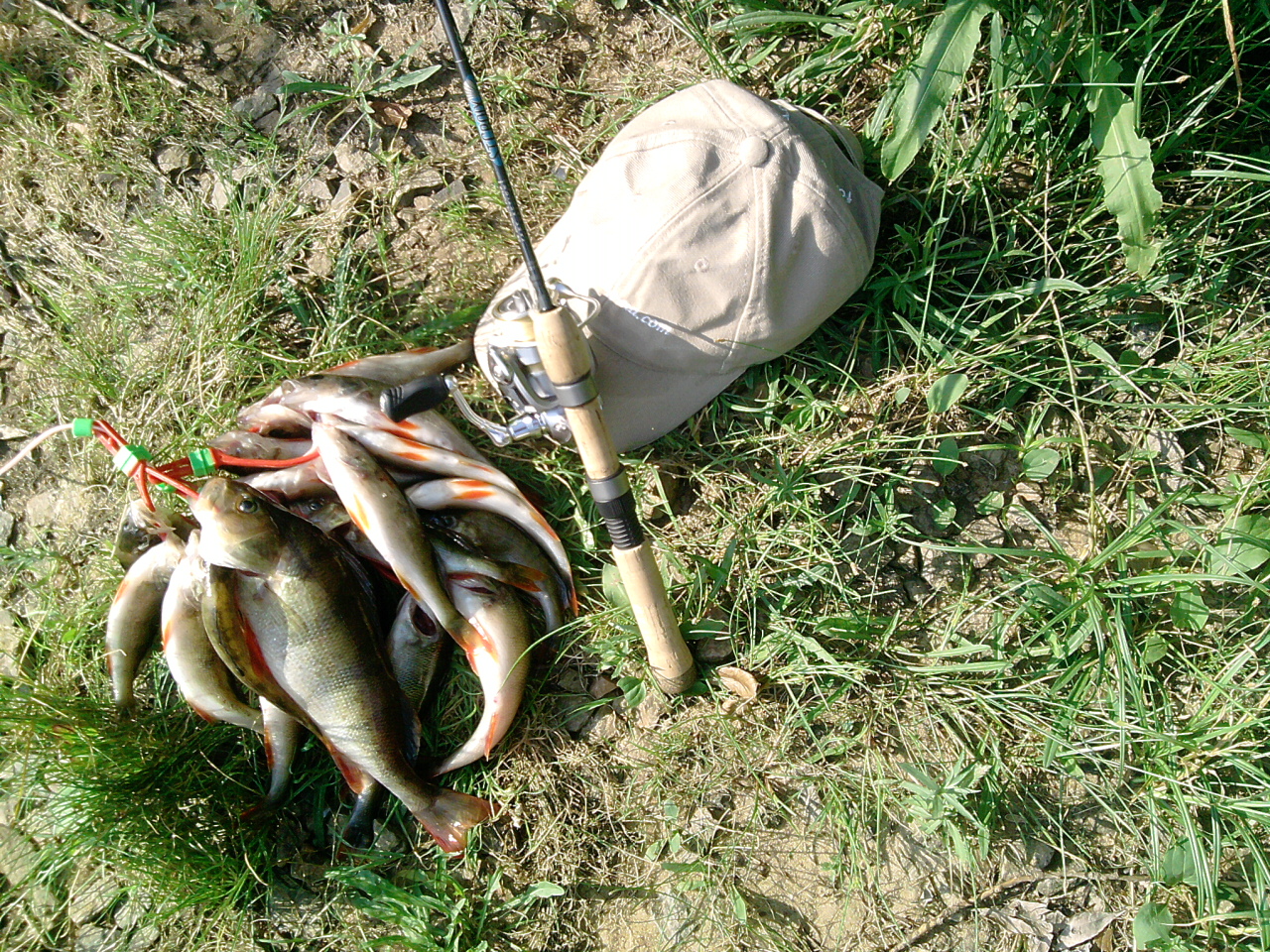 До восхода солнца окунь клевал на выбросе,потом переместился в траву.