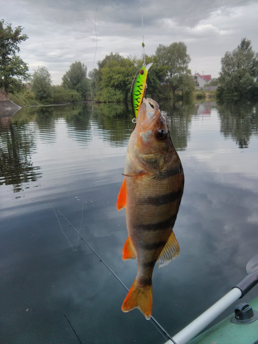 Утром отправились на озеро в осокорках, покататься на лодочке, помучать окуней. В итоге, всего 4 полосатых за пол дня на двоих..