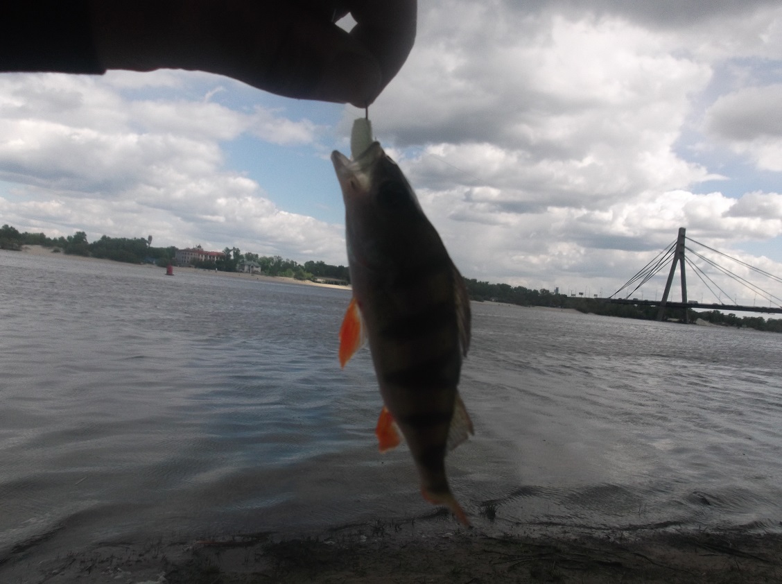Вчера с братом ловили на одном из Киевских озер.. Учились облавливать резину. Я мучал полосатых на отводной, а он на джиг 3 грамма.