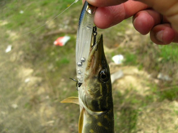 Каждый раз ,когда я проезжаю это место ,я всегда смотрю на него с недоумением и думаю ,а как тут вообще можно ловить?! Но местные стоят и даже что -то ловят, но на удочку. Сегодня мне повезло – у меня появился выходной и я отправился туда разведать , что же за «лужа» там такая. Прибыв на место ,перед глазами такая картина : берега грязные, валяются покрышки, шины, доски ,мешки разные, ветки и прочий мусор. Так как я был в очках, еще увидел много чего в воде ,но не будем о грустном. Что бы заработать первую клеваку ,надо было немного походить. Ловил как на джиг ,так и на воблера. Водоем очень интересный – глубины до 4 метров, разнообразный рельеф,есть пару хороших заводей ( под берегом резкий свал,а на центре глубина максимум метра 2),обширная мель. Первую щучку взял из под коряжки, на Jackall Colt 65 sp. Так как щучка в таких местах стоит не одна, поигрался с паузами и проводкой и заработал еще пару поклевок. Противоположный берег был не много закоряжен, были видны всплески ,рыбка была активна. Пробовал упираться в джиг – результата не было, хотя место очень перспективное,хотел узнать больше про рельеф и глубины водоема. Ближе к обеду рыбка стала осторожней , приходилось аккуратно подходить к месту и делать забросы из далека. Такой способ и позволял мне быть незамеченным возле лежащих и свисающих над водой коряжек . Щука атаковала на паузах ,главное было положить приманку точно под ветки или под травку, тогда на первых же рывках происходила поклевка. Но это было проблемно сделать с боковым ветром. Так как места были однообразные ,я часто перемещался и пробовал джиг-воблера ,воблера – джиг. Но сегодня рулили воблера ,вот только ближе к обеду 65 размер уже был не по вкусу местной зубастой. Я поставил воблер по меньше ,а именно Usami Kira ,который сегодня показал самый хороший результат .Сочетание моей проводки и пауз ,а так же игры этого воблерка дали суперский результат – когда рыбы и не видно было ,это воблер начал просто косить щуку (3 забросы – 3 рыбы) причем с одной точки ,которую я прокидал ранее. Потом прошелся по тем местам ,где я уже ловил и оттуда еще поймал пару шнурков. Было много промахов а так же сходы, вот что значит подобрать ключик ,когда он нужен! Очень интересно наблюдать за игрой приманки ,как тут вылетает щучка и сразу же атакует её. Очень захватывает. Когда разловился на воблера ,джигом почти не кидал ,только одну холостую заработал. К часу дня клев совсем затих ,щуки тут ,как будто не было . По итогам - за десяток щучек я поймал ,все они спортивного размера . Очень интересно ловить на воблера в зоне твоей видимости ,а особенно видеть поклевки. Как вывод хочу сказать – по возможности надо проверять жабовники и водоемы которые находяться рядом с вами, кто знает что в них может плавать ;)