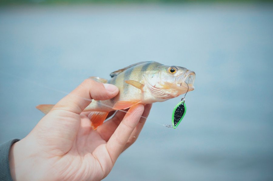 Ветер только усиливался, на железо и воблера ловить не комфортно ,поэтому в бой идет проверенный джиг. Тут все было просто – окунь сразу же проявлял себя, жадно атакуя приманки. На одной из точек , Даня удачно отловился на воблера ,снял с точки больше десятка окуней. Я же ловил окуня на маленькие твистера и виброхвосты, которые он кушал не хуже чем воблера. На маленький твистер так же позарился не большой голавлик ,который украсил нашу рыбалку. Очень хорошо работали приманки Reins и Select в темных цветах на минимальной огрузке ,а так же воблерки ,такие как - Strike pro midge,Usami Kira ,Jackall Chubby .
