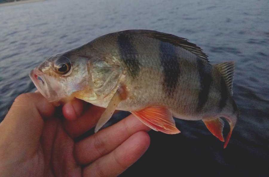 Так как на воде было ветрено,решили поискать полосатых,а на вечер оставить самое приятно - белый хищник и судак.Каждая постановка лодки приносила поклевки и рыбу.Окунь попадался от детского размера - до внушительных горбачей.В основном размер рыбы был очень разнообразен и приманки нужно было подбирать соответствующие.С окуньками попадались и не большие судачки.Такое разнообразие очень радовало,учитывая точки,в которых мы ловили.Но чем больше мы ловили окуней,тем больше хотелось чего-то другого,а именно другой рыбы.