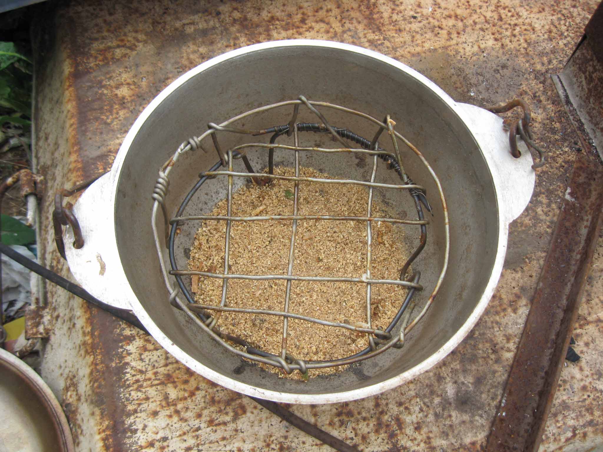Начитался и насмотрелся фоток про копченую рыбку. А также имея окуня, которого все отказывались чистить, но не имея коптильни решил сделать это следующим образом... Взял казан, немного проволоки, выполнив небольшую летнюю обрезку абрикоса, напилил опилок и вперед!