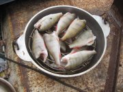 добавлю следующее : время приготовления 20 минут. казан, на удивление, после двух закладок остался чистым, только крышка и дно требовали небольшой чистки. Ну о том, что на столе рыба была вне конкуренции, можно не говорить!