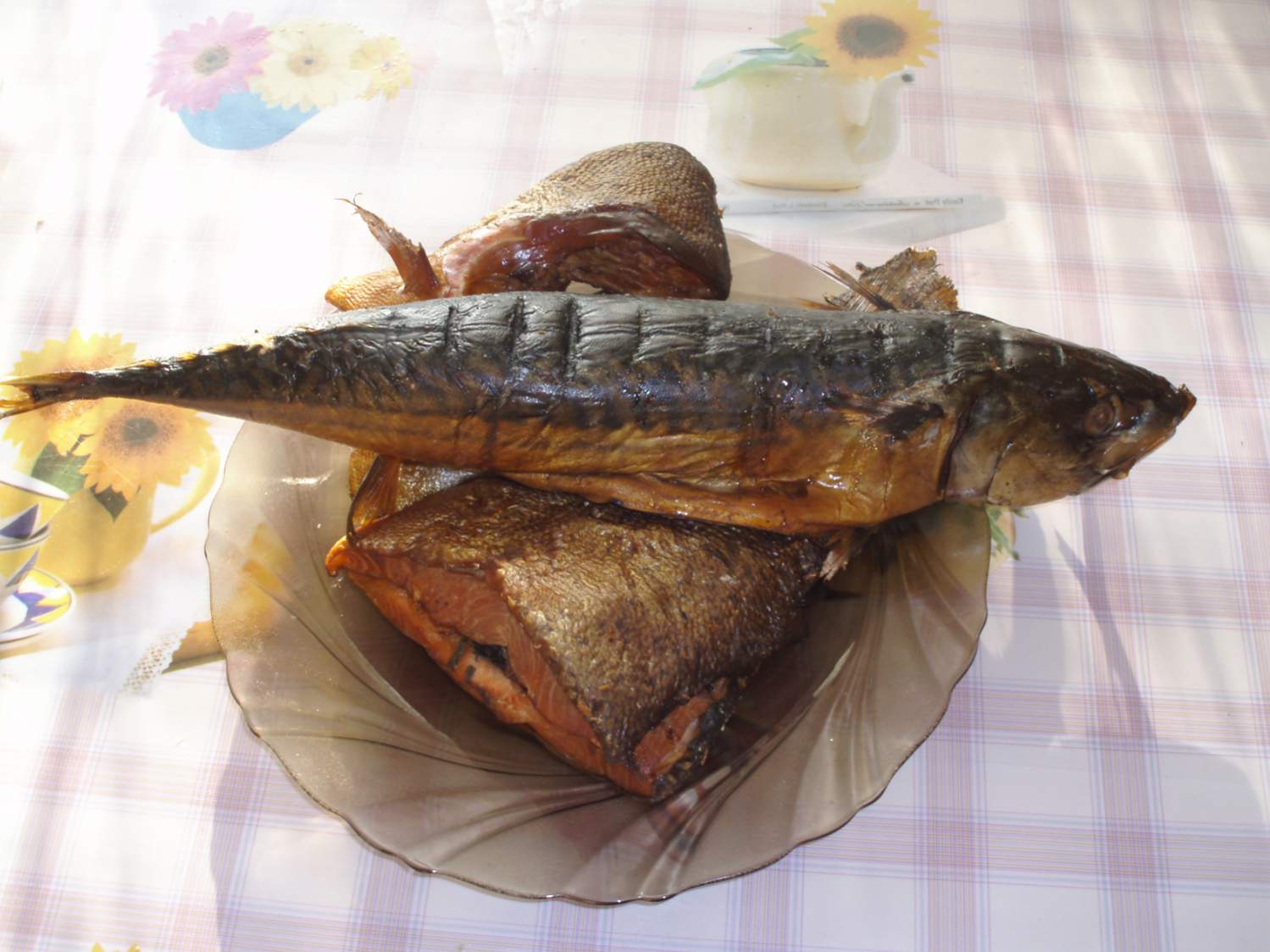 Лопается шкура при слишком высокой температуре копчения. Хотя и величина рыбы влияет. Большую я всегда режу и ложу потрошоным брюхом вверх, чтобы сок и жир меньше вытекали
