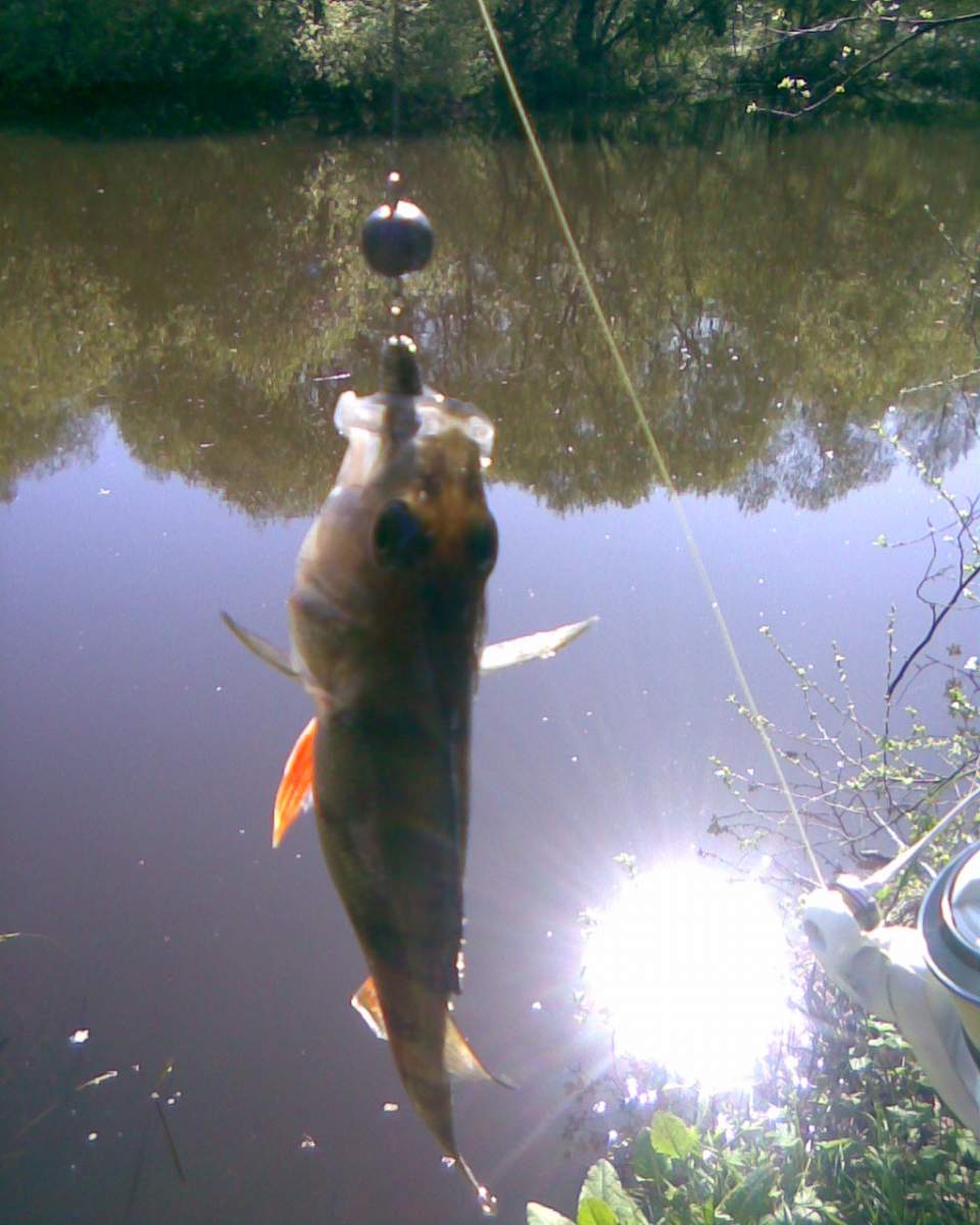 Тня. По техническим причинам,вчера не смог отписаться.Пишу за вчера.Сново удалось побывать на р.Тня..Но в этот раз решил пройтись по речке,от места между селами Новая и Старая Романовками до места впадения в р.Случь,и тратить на облов перспективных мест не более 15-20 минут,применяя для облова,по-очередно вобы,вращалки,джиг.Через 15 минут,на одном из перспективных мест выстрелил джиг(чебурашка 6г.,виброхвост на одинарнике),на следуещем месте опять поймал на джиг.После этого вобы и вращалки оставил в покое.На протяжении всего пути,поймал восемь щучек,все мелкие приблизительно от 150г до 350г.За три часа дошол до места впадения р.Тня в р.Случь,решил немного поупираться в окуня.На этом месте бывал неоднократно,и по опыту прошлых рыбалок знаю,что,окунь неплохо ловится в этом месте на отводной.Сподхода на первом же забросе поймал окуня на джиг.Понял что окунь есть.Перестроил снасть под отводной,но оказалось не всё так просто.За полчаса только одна невнятная потяжка.Пришлось вернуться к джигу.Но всётаки ключик к окуню я подобрал,помог случай.При очередной проводке(класическая ступенька два оборота катушкой)приманка на дне слегка зацепилась за траву,двумя энергичными взмахами удилища приманка освободилась и высоко оторвалась от дна,и как только она,как бы зависла,произошла покльвка.В последствии такая проводка себе оправдала,нескажу что начался просто бешенный клев,но за остальные сорок минут что я ловил,было пой мано12 окушков,правда все мелкие.А проводка выглядит примерно так: после заброса и падения приманки на дно,выбираем слабину шнура и делаем два энергичных взмаха удилищем потом пауза до касания дна и т.д.Последняя поклёвка запомнится наверное на долго,при исполнении такой проводки произошел мощнейший удар(отдай спиннинг),после бурного вываживания на берегу оказался жерех около 1кг.Это вообще второй случай за мою спиннинговую практику(более 12 лет),поимки мной жереха на джиг.