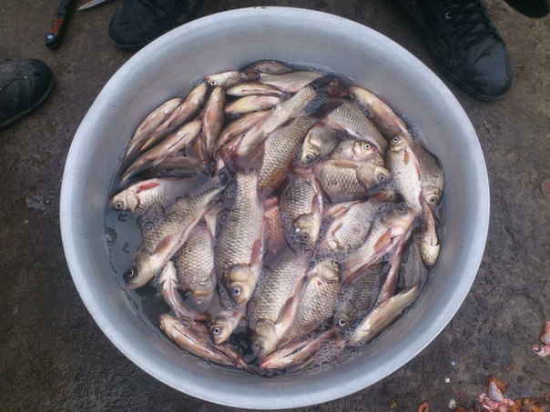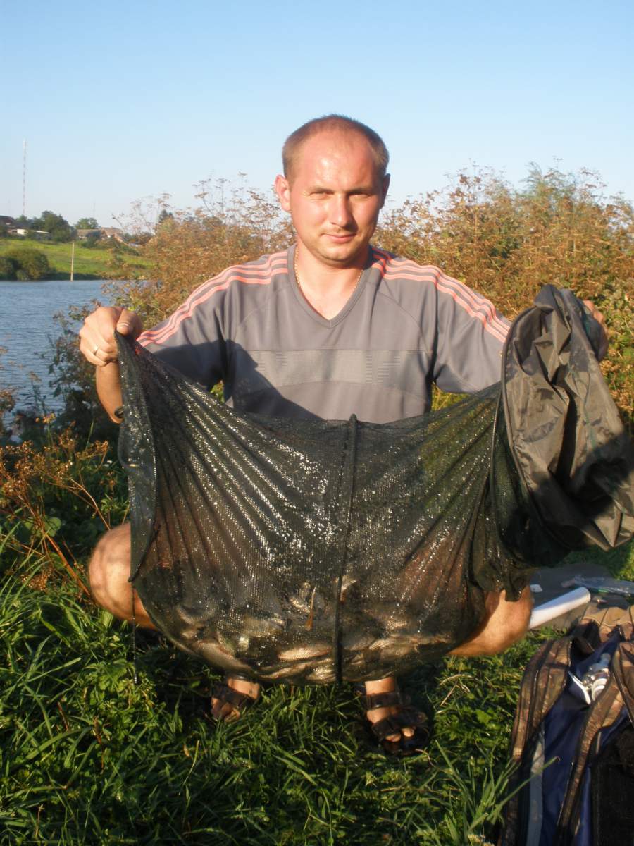 Вдалося в суботу 27.08.11. з пропозиції кума відвідати водойму в с. Радомишель. На водоймі були в 8:30, рибалили на першому ставку від дороги. Я рибалив на махову поплавкову вудочку. З початку рибалки кльов був недуже активний, пік кльову був з 14 до 16:30. Клювали постійно карасики розміром на лодонь, за наживку використовували черв'яки та опариш. Також на даній водоймі відбулося моє знайомство з шалено -навіженою рибкою синявка (Гірчак звичайний) яка постійно тягнула поплавок на дно і збивала наживку а сама розміром 3-5 см. В 17:30 ми вже почали збиратися додом, результат на фото.