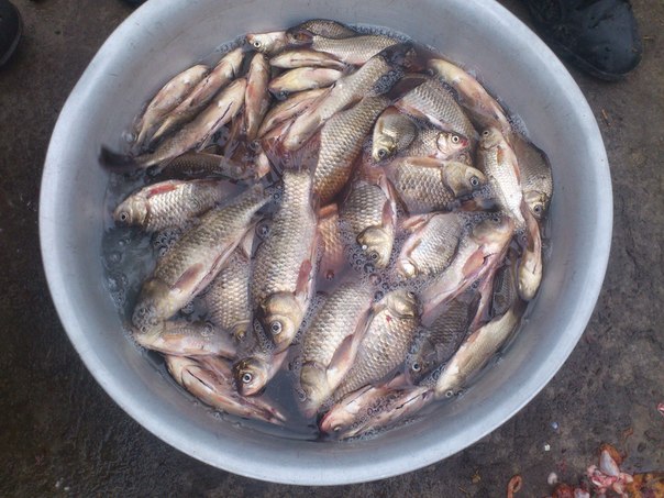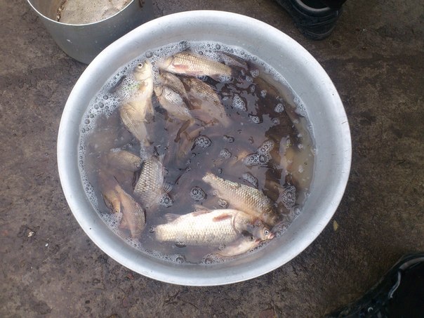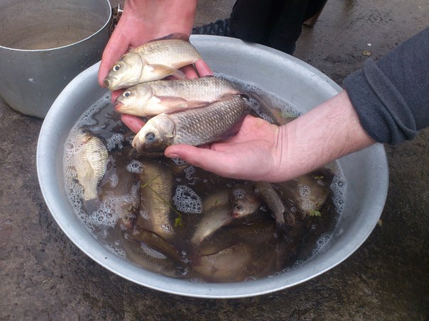Вчора бачив знайомого. Каже що був в на рибалці в Радомишлі на 3 ставку. З самого ранку проседіли майже по нулях, потім пришла жіночка і почала брати білети. Після розмови з нею було відомо шо багато карпа не пережило зиму та задихнулось. В став було запущено певну кількість коропців, і казала шо ніхто додому не їде без улову. Взяли вони на двох один білет, і згодом було зловлено 7 коропців грам по 400 та кілька зійшло і певна кількість карасів. Знайомий каже шо відвів душу на риболовлі, брало на пружину з мастиркою а на поводок хробак. Більшість риби на хробака.