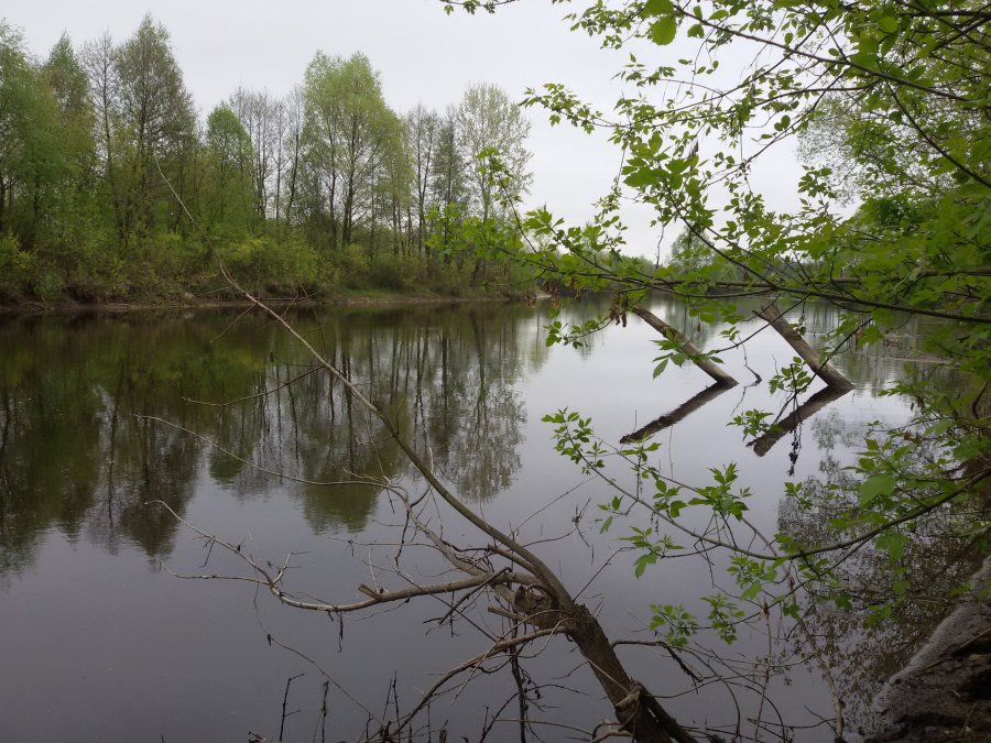 В субботу с товарищем посетили эту чудную реку Снов.Приехали на место около 6,в 6:30 на воде.Решили сплавляться на гребных лодках в пределах разумного и облавливать перспективные коряжки.Но не тут то было,река своими изгибами и потенциально перспективными местами быстро взяла нас в плен.Срабатывал спортивный интерес и любопытство,по типу дойду до того поворота и обратно,вон до той коряжки и обратно...Так шел километр за километром,коряжка за коряжкой.Когда контроль расстояния вышел из под контроля,я посмотрел на часы,они показали 13:00...6 часов сплава!Точно пора обратно!Перспективы были не радужными,но в мышцах еще оставлись силы)
