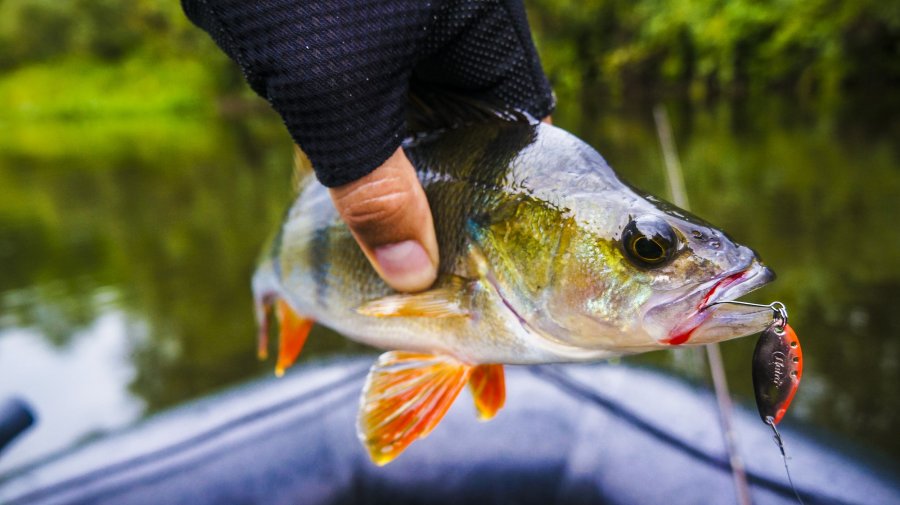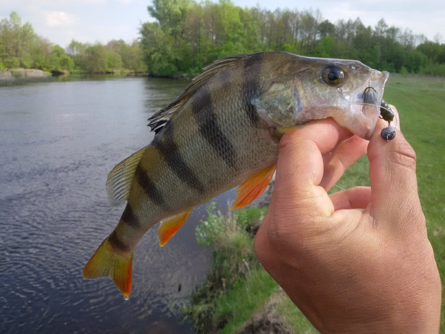 А теперь о самом интересном,за 6 часов нашего сплава рыбка отказывалась клевать,переодически попадались голавлики размером с палец,но это было не то что мы хотели и рисовали в своих воображениях сплавляясь около 10-ки километров.Когда плыли обратно,облавливали те самые коряжки,которые проходили утром и они приносили еще больше поклевок и поимок головля с окунями.Но в перспективе с таким раскладом плыть до часу ночи мы не задерживаясь плыли до точки высадки.Получается рыбка начала проклевывать к обеду,а мы в пик ее клева тупо "маслали" веслами.Когда я подплыл чуток выше этой точки и сделал заброс под нависший кустик,сразу ощутил мощную поклевку.Пару минут вываживания и рыба заходит в коряжник.Все таки не хватило белезе корентии мощи чтобы сдержать эту рыбу.Остальные пару минут я провел в забавном положении:стоя буквой Z я давал пощечины комлю,потом перешел на щелбаны(видел такое у кого то в видосах)Попутно гадал что это за рыба:голавль,язь,соммм....))Воображение разыгрывалось еще по той причине что рыбу то я особо и не подержал,она сразу залезла в корягу.И о чудо,после очередного щелбана белезе,он вылез,дальше дело пошло быстрее.Окунь!!!840 грамм показало взвешивание,это мой новый ультралайтовый рекорд!Вот такие рыбины стоят целого дня ожидания!И надо же было сплавляться до 10 км,чтобы вернуться и поймать его на точке старта!Вот такое бывает,главное не сдаваться!)
