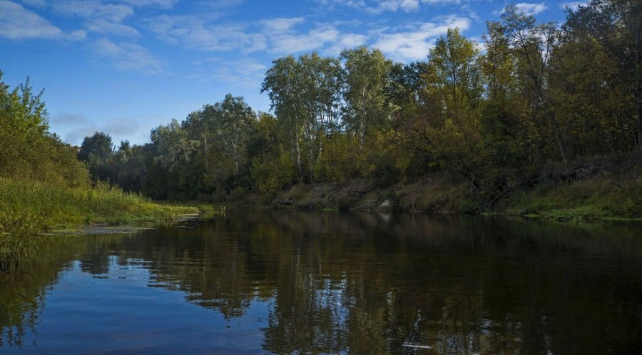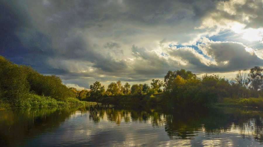 В воскресенье уже по традиции побывали на реке Снов,цели ставили те же-поймать хорошего Язя,которого там хватает:).В этот раз что бы не повторять прошлых ошибок решили выбросить лодки выше по реке,а машину оставить на пару км ниже.Я остался качать лодки,а Олег вернулся ко мне пешком.Сбросились около 9 утра,первые метры сплава дали неплохой результат,в улове были голавли и неплохие окуня.На воде стоял полный штиль,небо было вплотную затянуто тучами.Через час периодически стало появляться солнце ,но поднялся ветер,клев отрезало и дальнейшие часы приносили лишь редкие поимки небольших рыбин.Радость в это время приносили невероятные пейзажи осенней реки которые открывали нам новые повороты.Люблю эту пору,когда ярко желтые листья еще на деревьях,а берега чистые и пустынные...