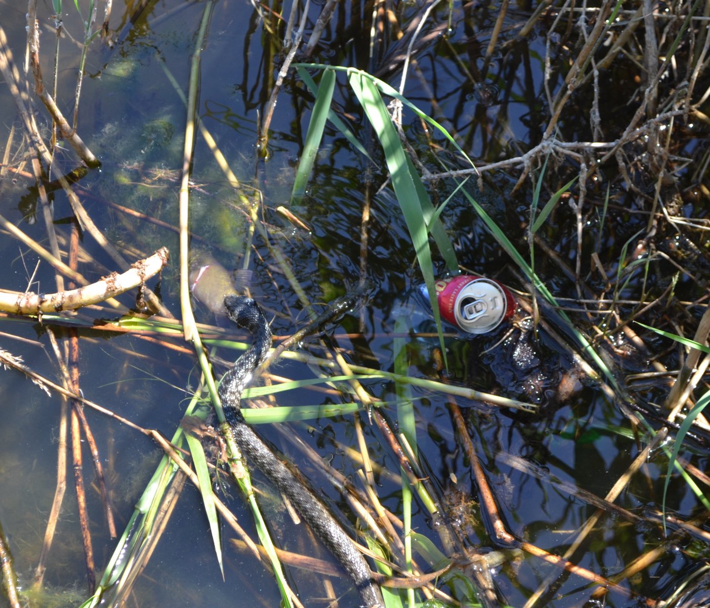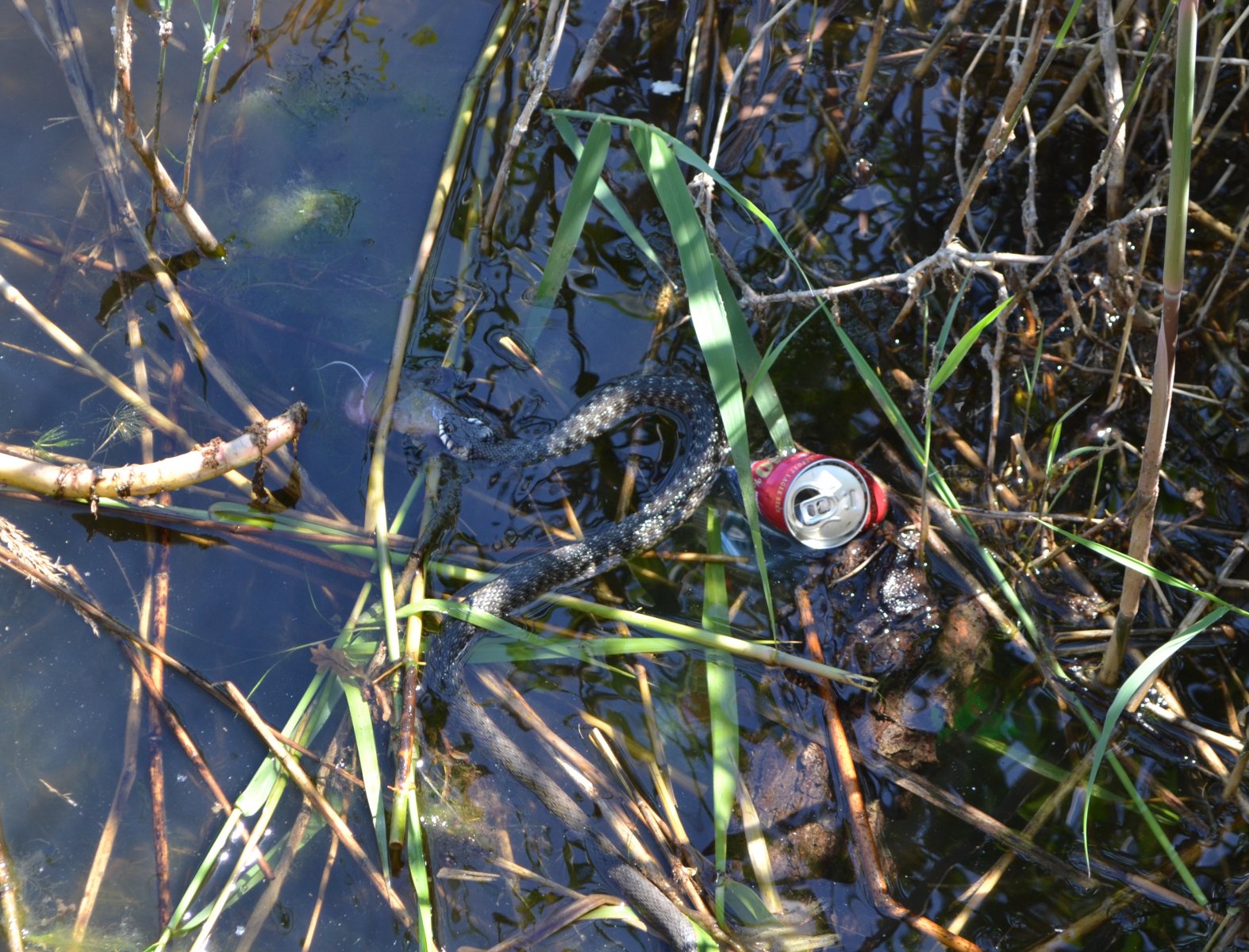 На останній рибальці на річці Самара. Зміюка намагається заковтнути лина з хвоста. Зміюку так і не впізнав: спочатку гадав, що звичайна гадюка, але потім "погуглив", більше на водяного вужа схожа. Може хтось точно визначить цей вид?