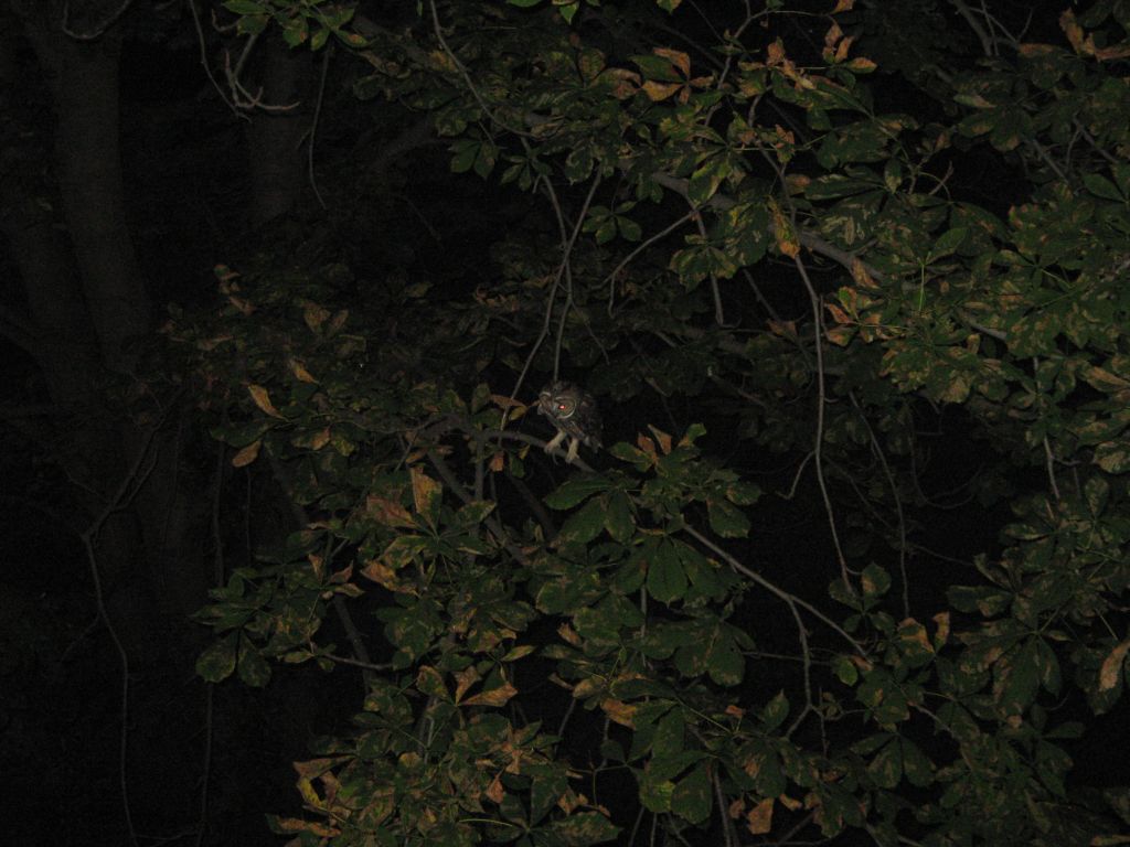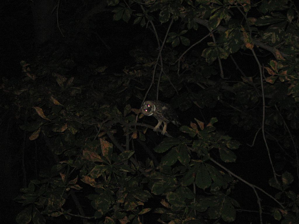 Буквально только что... Совята вылетели из гнезда под чутким сопровождением и защитой мамы. Деревья находятся очень близко с балконом. Малышей сфотографировать не удалось (непоседы и быстро слетали с мета на место), а мама немного попозировала с вращением головы и угрожающим раскачиванием своего тела. Фотоаппарат простенький и сумерки так что качество съемки соответствующее.