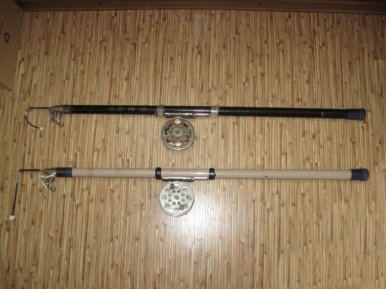 Так как сегодня я по домашним делам (не на рыбалке)))),добавлю свои старые рыб.раритеты:две телескопические удочки производства СССР(1982-83гг) и остатки старых блесен колебалок все они рабочие и отлично ловили щуку и судака.1-удочки телескопы(последнего поколения улучшенные),длинна 4.75см,смонтированные боковыми кивками(ловил на коричневый на яйца и блесна гвоздь:окунь,щука,судак,карась,голавль,и пр).На сером ловил щуку,судака,сом на живца.Катушки тоже тех времен.2-блесны голубые "Балтика" самая убойная блесна по щуке в лопухах,и окунь на заливах.Остальные самодельные "Шторлинги" двух цветтные(серебро-латунь и серебро-медь).Остальные блесна в селе у тестя:Тяжелый Норич,Малая тяжелая(есть двух цветные) и пр.