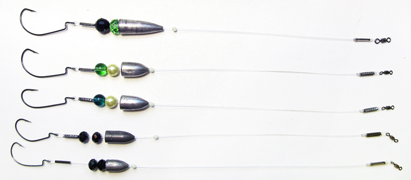Монтировал с одной бусиной между крючком и грузом. Думаю тут можно эксперементировать...