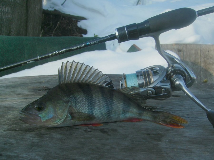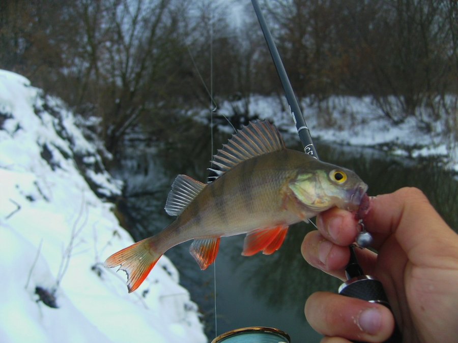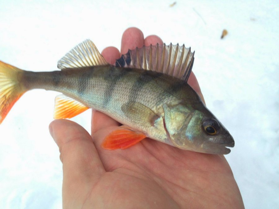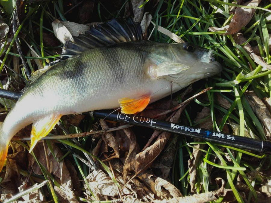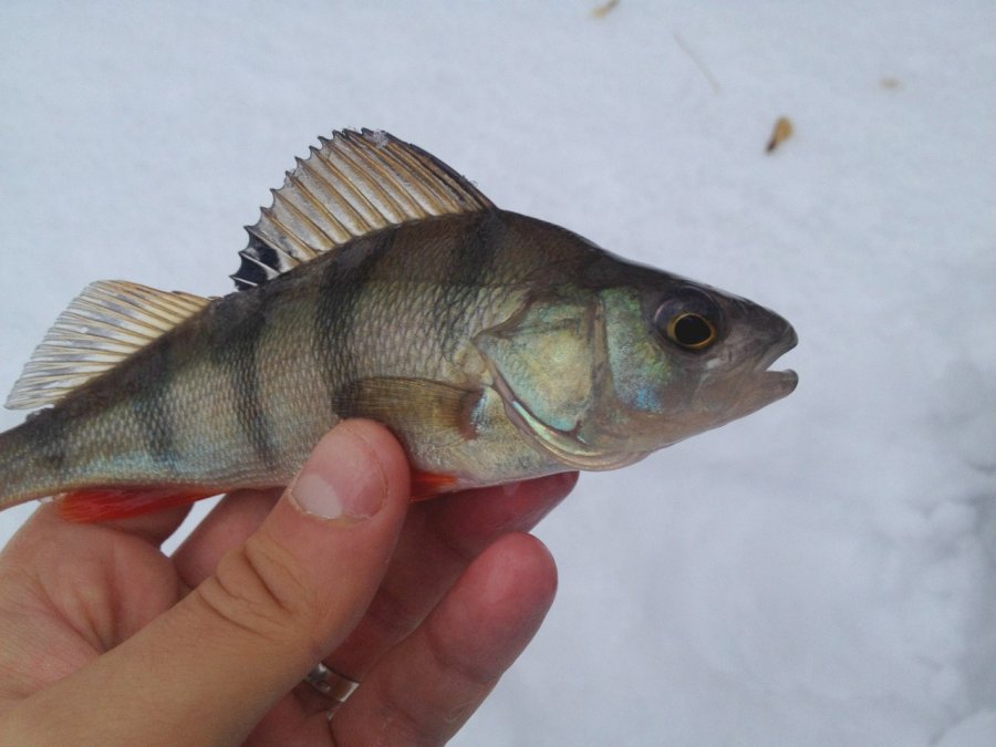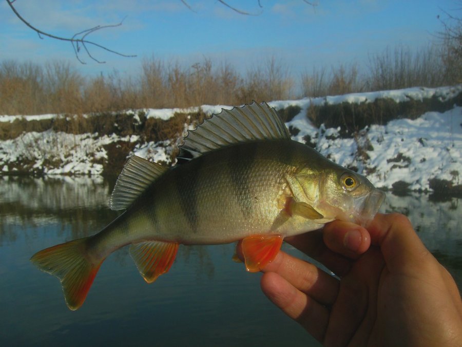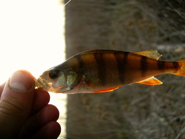 Отсутствие рыбы та точке не смущало,так как снега не было,почти любое место можно было без труда обловить.Крупных окуней не было,были приятные.Одного хорошего поймал я,а еще двух Максим.Все остальные из разряда спортивных рыбок.
