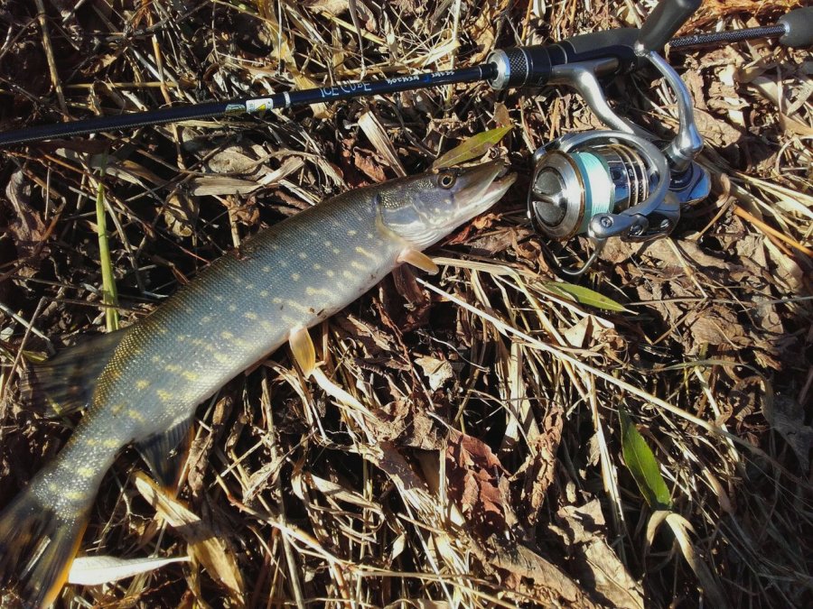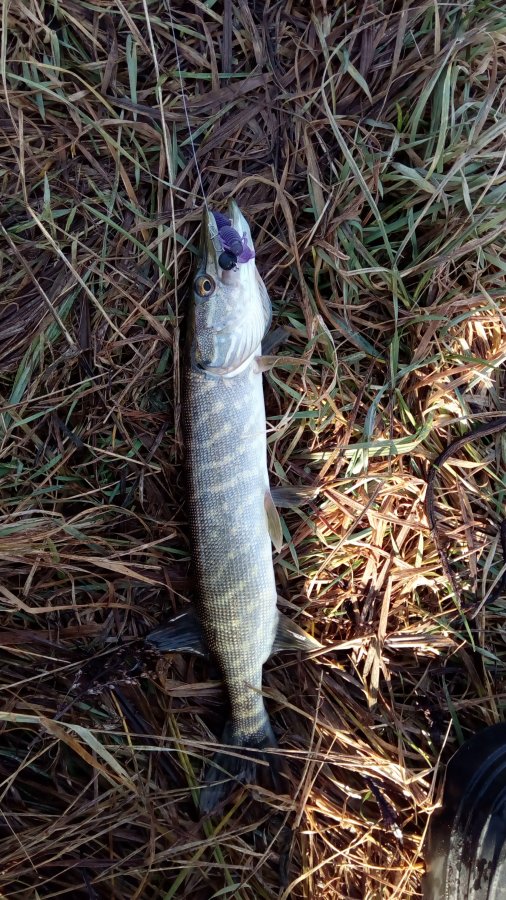 Заход по второму кругу,как и по первому,дарит мне вторую щучку.Клюнула далеко,так что успел насладиться вываживанием как следует ;)Ну а дальше было все стандартно - окунь клевал редко,но метко.С утра вис и было плохо с реализацией,а в обед уже бил и садился намертво.Уже в самом конце заработал не плохой щучий сход,но через короткое время Артур зарабатывает щучий тычок и ловил третью щуку за этот день.