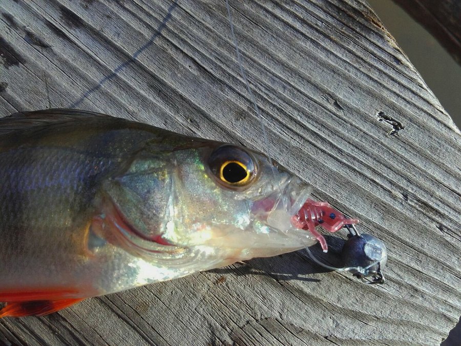 Уже на первой точке с третьего заброса ловлю маленького окунька.Потом следуют поклевки,одна за одной и еще поклевки.Решил долго не застаиваться,много перемещался и снимал активного,так как если упираться,можно было тоже не плохо ловить.Но прежде всего меня интересовал размер рыбы.После часа рыбалки стало понятно,что мизинчики покоя не дадут.Каждое место приносило три-пять,а то и больше маленьких рыбок.Что тут скажешь,если окунь чуть больше чем двухдюймовая приманка и очень голодный :)