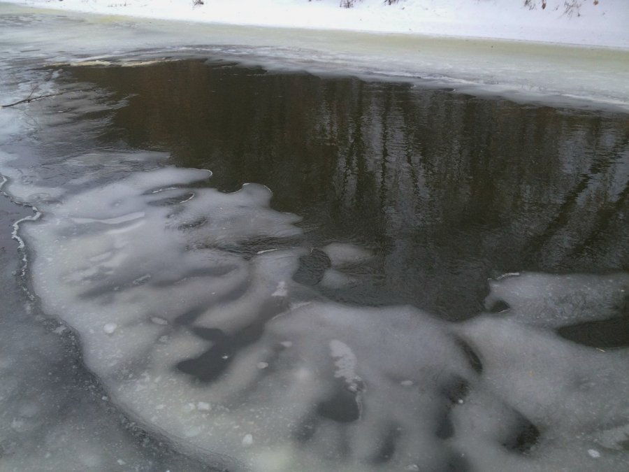 Водоем выбрали методом тыка - малая река,которая находиться не очень далеко от столицы.Как лед и какой он,я не имел малейшего понятия,по этому ехали наугад.Приехали на реку,а она во льду,вот теперь точно приехали...Раз уж выбрались,решили идти вдоль и искать местечки с жидкой водичкой.С этим делом очень удачно получилось,с самого начала я сообразил поставить мормышку и открыться небольшим окуньком.Так как рыбалка "level hard" то и радости не было предела;)Ловили мы с Артемом долго в этих разных промоинах и их поиск забирал много сил,снега было почти по колено.То что на фото - это более-менее открытая вода,если это можно так назвать,все остальное твердое.Пару раз заходил на кромку льда что бы сплавить приманку под лед и понимал,что затея эта не самая хорошая.Хрупкий лед трещал по швам и никак не хотел таять.
