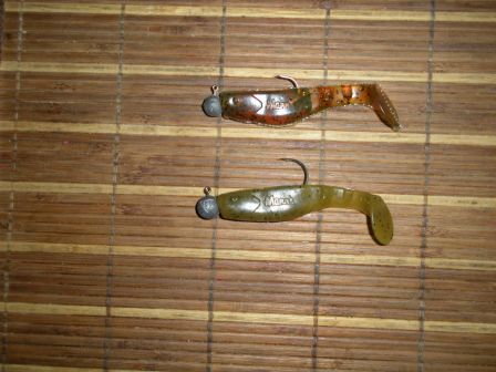 Тот, что на фото сел на 10 гр головку и 4 дюймовый предатор на глубине 6 метров при ловле щуки.