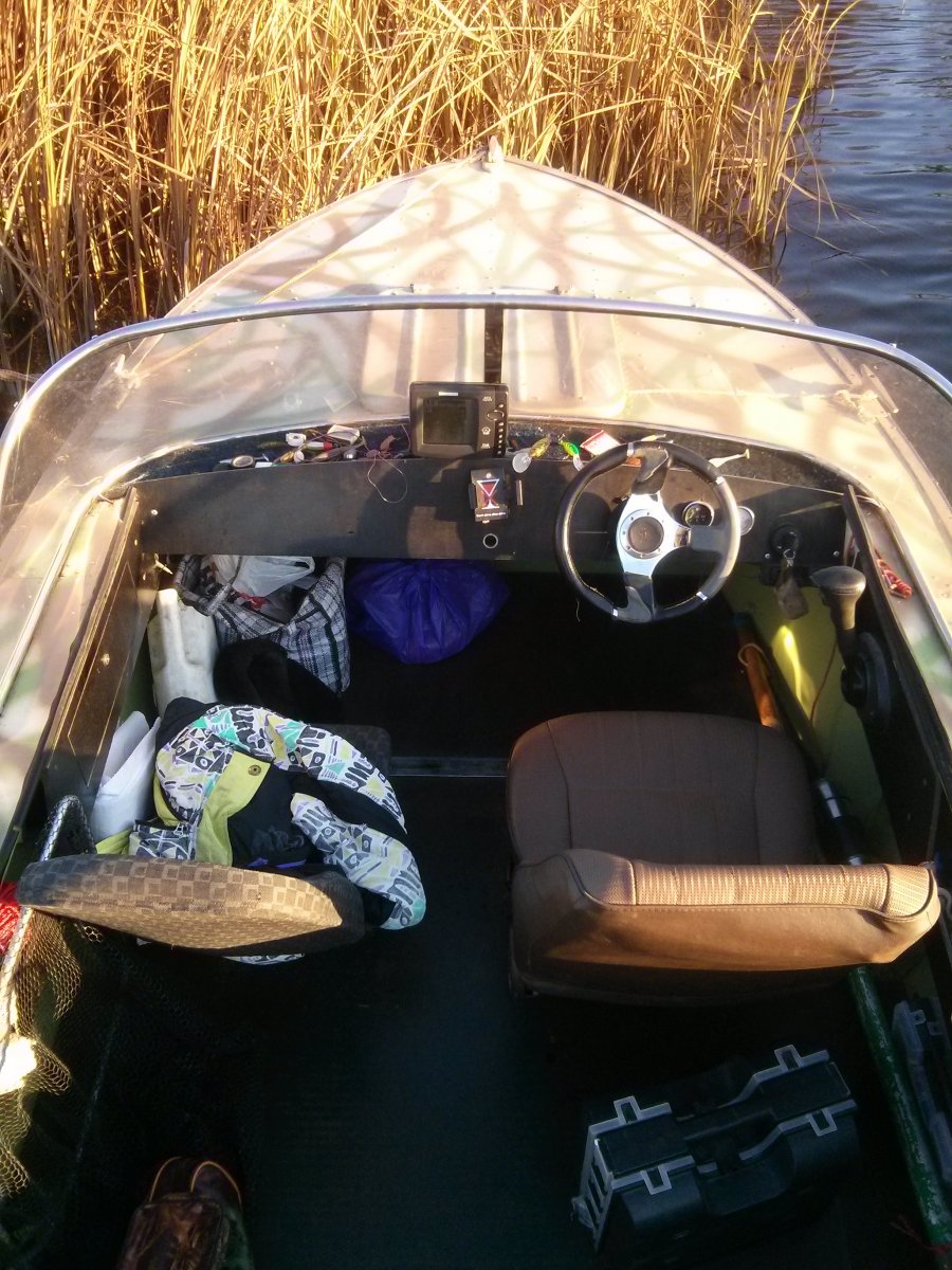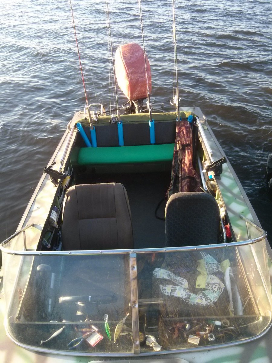 Переварен полностью транец 5мм. Новое лобовое стекло. Установлена лестница для купания. Пол водостойкая фанера. Удобные сиденья. Есть 2 спинки для заднего сиденья, одна с держателями для спиннингов (удобно для коропа) вторая мягкая. Тент сделан в прошлом году. Электропомпа. Стационарный бак на 30 литров. Ходовые огни, освещение салона.