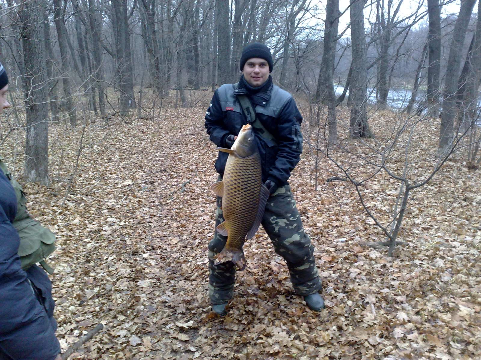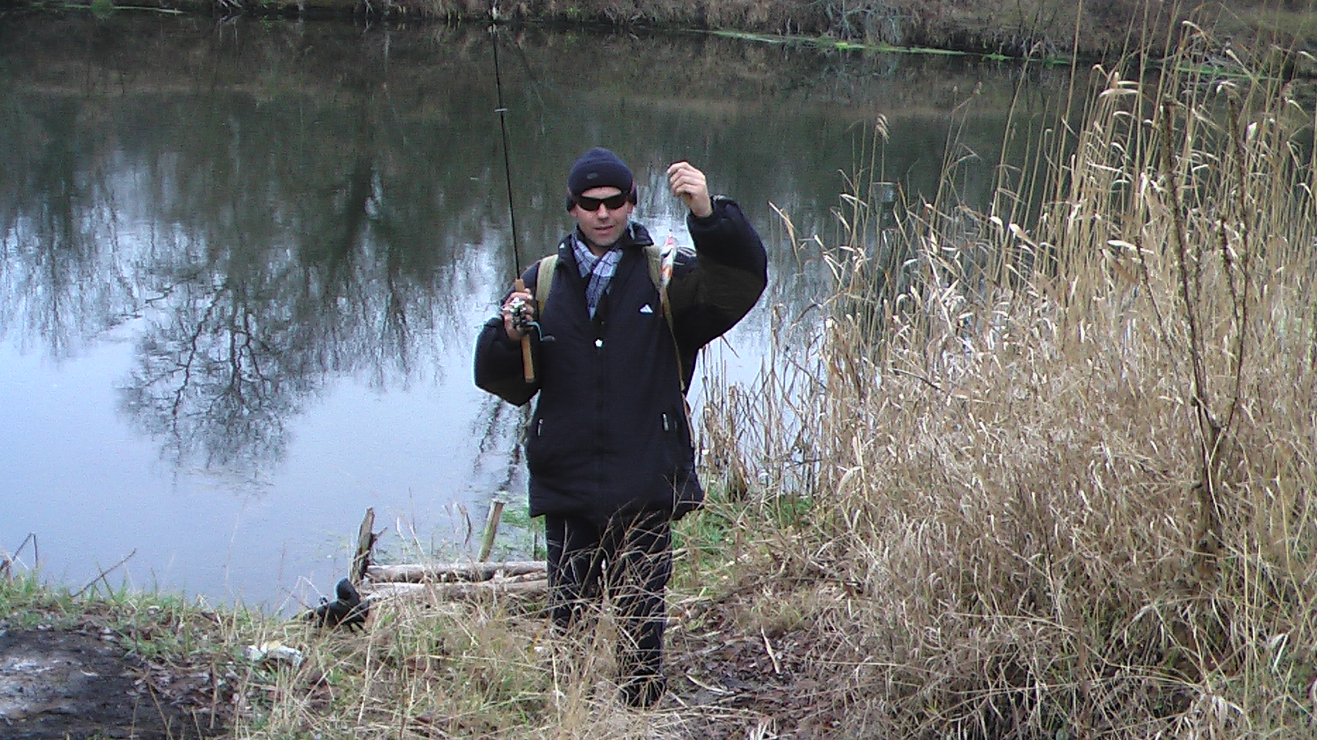 Сколько времени утекло с тех пор как я в последний раз писал отчет на своем любимом форуме... Но вот я снова вернулся и готов делиться новыми отчетами, приключениями, переживаниями! И так, начнем;) Дело было третьего декабря. Необычная для этого времени года плюсовая температура, легкий ветерок и неизменные компаньоны, все это составляло великолепное настроение и вселяло надежду на неплохую рыбалку. Ранний подьем, электричка отправляется в 2,44 и через два часа мы уже почти на месте. Приехав на станцию берем такси, таксист со скрипом соглашается взять нас всех вшестером:) Но вот все трудности пути позади и мы спускаемся вниз по течению, через три киллометра достигаем наших рыболовных мест, еще темно и есть время для дружеского привала в ожидании рассвета. С рассветом разбредаемся по берегу Донца кто куда. В точке нашего старта в Донец впадает небольшая речушка, после чего река делает большую петлю. В начале петли река мелкая и интереса непредставляет, поэтому я решаю срезать путь через поле и минуя петлю выхожу на большой залив после которого ниже по течению Донец становиться глубже и гораздо интересней для моего любимого Джига. Там я натыкаюсь на еще одну компанию знакомых мне рыболовов безрезультатно полоскавших в заливе различные приманки:) Присоединяюсь к Сергею облавливать точку. Он жалуется на безрезультатную поклевку на зеленый виброхвост. Я предпочел рабочей зеленке перломутровый твистер №4 от релакс. Вода мутновата, но еще не кретично и перломутр недолжен подвести. Спустя минуту поклевка на падении, рыба идет тяжело, сопротивляясь. Сергей готовит подсак, крутой берег непозволяет взять рыбу самому. Щука оказалась два с половиной кг. Отличное начало дня;) И так, погода необманула, рыба берет! У всех появляется азарт, но до часа дня больше ничего интересного непроизошло. А потом понеслось. У Сергея берет щука чуть более моей, к моему удивлению берет на воблер невообразимых размеров:bm: Следующим обрыблевается Юра, его трофей заметно поменьше. Так день близился к концу и почти все имели в наличии хотябы один хвост. Я решаю на последок пройтись еще ниже по течению, исследовать рельеф дна на неизвестных мне участках реки. Ко мне присоеденяются Юра и Сергей. В троем мы идем исследовать неизвестные тропы. И как выяснелось незря. На очередном забросе натыкаюсь на траву посередине русла и неспеша продергиваю через нее виброхвост и вдруг приманка как мертвая отказывается двигаться к берегу, спиннинг в дугу, рыба невероятно тяжела и идет очень медленно. Я в шоке, строю предположения и тут рыба решает, что пора плыть к другому берегу:) Затянутый почти намертво фрикцион дико вижжит... Вокруг уже стоят друзья с подсаком. Через десять минут показывается тень в воде и я понимаю, что это мой звездный час! С виду настоящий монстр! Рыба показуется во второй раз и я слышу удивленный возглас Сергея "Карп, это карп" Тут же Сергей начинает давать мне советы по вываживанию, и так в тондеме с Серегой мы боремся еще десять минут с удивительно сильной и здоровой рыбой. Вот наконец карп устает и к нашему везению с первого раза заходит в подсак. Восторг непередать словами:) В трофее 11,500 речной Сазан. Фотосессия и возврашение на базу. Там опять фотосессия, я собераю спиннинг и в эйфории слоняюсь по берегу пока мои коллеги еще делают последние забросы. Уже смерк