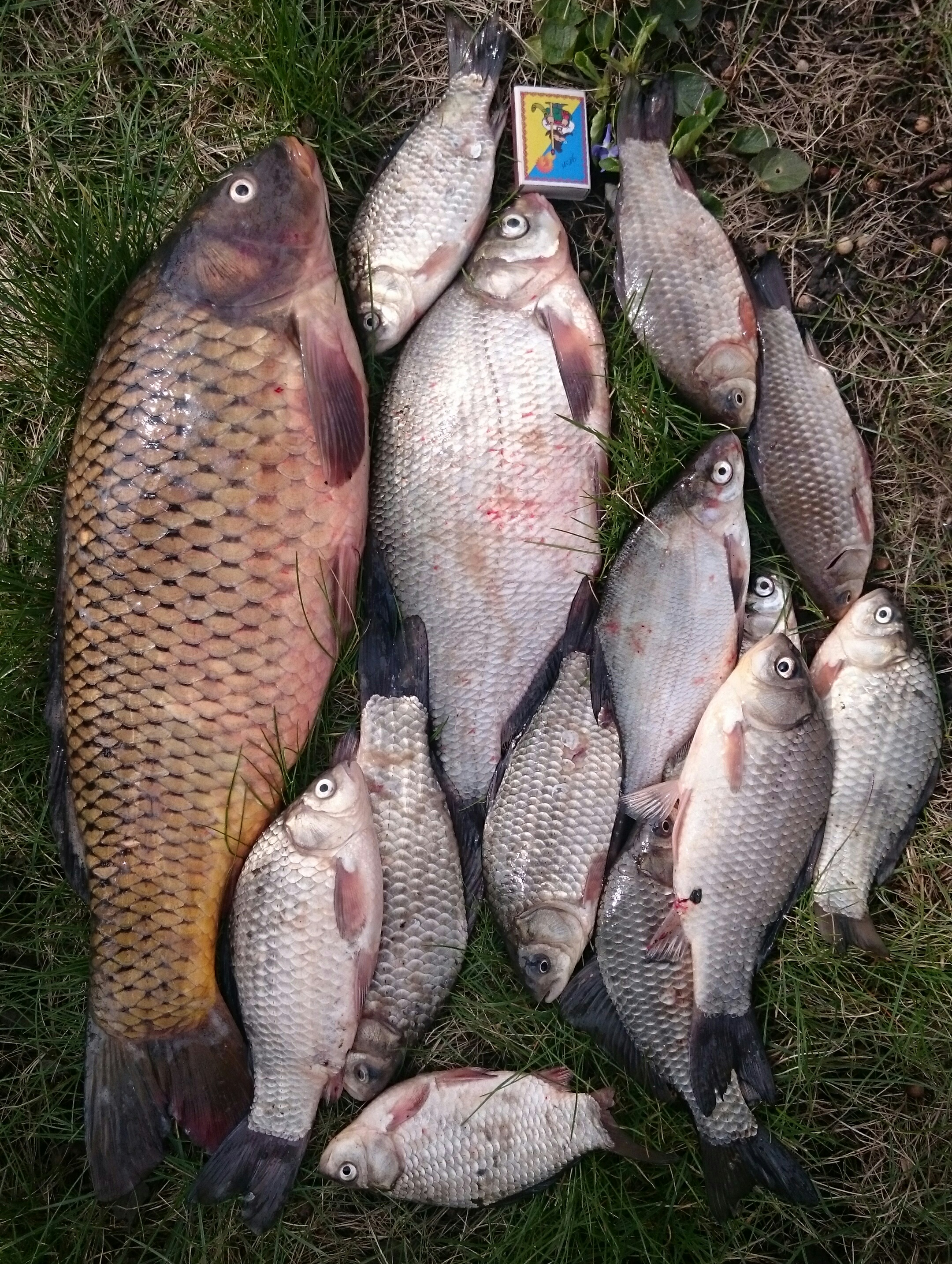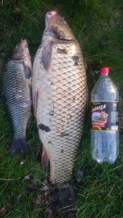 Отчёт за рыбалку с четверга на пятницу. Отоспавшись после рыбалки и продолжения в виде небольшого фуршетика на даче друга, около 14.00 вышли на рыбалку. Снасти те же, что и в прошлом отчёте. Прикормка такая же, только добавил копромелассу от VDE. Учитывая, что на прошлой рыбалке были поклевки сазанов, сразу поставил поводки 0,18 с амортизатором. Нечасто поклевывал карасик, чуть больше ладошки. Козликов не было вообще, плотвички было всего пару штук. Лучше брало на мотыля. Если бы не вчерашние сазаны, то в 19.00, точно ушли бы домой. А так решили подождать до 23.00. Вискарик помогал скоротать время и поддерживал хорошее настроение. Поклевки карася прекратились. Около 21.30 была мощная поклевка на фидер, удилище ловил уже в полете, но к сожалению мимо. Через 15-20 мин, поклевка у друга на крокодил, спин в дугу, фрикцион поёт, рыба уже метрах в 15 от берега и тут китайская катуха друга, устала, полетела шестерня. Друг попытался руками вытащить, но рыба не дала ему второго шанса. После 22.00 у меня на ин-лайн, опять мощная поклевка и после непродолжительной но отчаянной борьбы, сазанчик на 2,2 кг был уже в подсаке. Около 23.00 у друга поклевка и сазанчик на 1,5 кг был благополучно взят в подсак. Больше поклевок не было и в 2.00 ночи ушли спать.