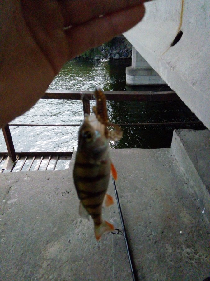Наконец-то спустя неделю со дня покупки выехал на Самару обловить новый спининг и воблеры. В 4.00 как обычно покинул дом в надежде занять место получше. Доехав до моста понял что человек 15 проснулись раньше. Припарковав машину в тени (на удивление место нашлось) принялся вязать снасти. К моменту как я впервый раз замочил воблер было уже довольно светло и Самара "кипела" рыбой. Казалось все будет отлично. И правда, после нескольких забросов первая реализованная поклевка и окушек в руках. Через некоторое время второй. Начинает дуть ветер. И появляются рыбатели на лодках. :company: И дальше в течении пару часов всего пару поклевок и те со сходами. Это и поддерживало азарт. Ветер разгулялся не на шутку и ловить на 3х граммовые воблера стало невозможно. А продолжать хотелось. Достал из машины палку покрепче повесил силикон на ОП. Рыбачить стало легче но поклевки становились все реже. Вытащив из воды ещё пару матросиков начал собираться домой. Предварительно отправив малышей подростать. Новые снасти обловил удачно и отдохнул. Цель достигнута. :zachet::somyara:
