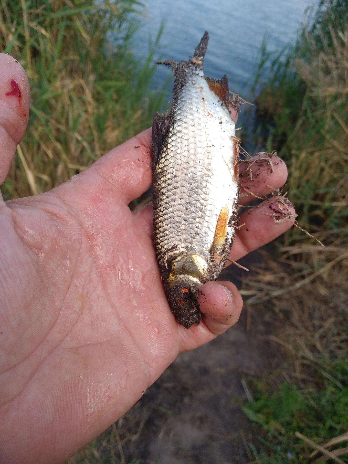 В перерывах между купания, на поплавок поймал пяток плотвичек. Клевало на оперыша и перловку.