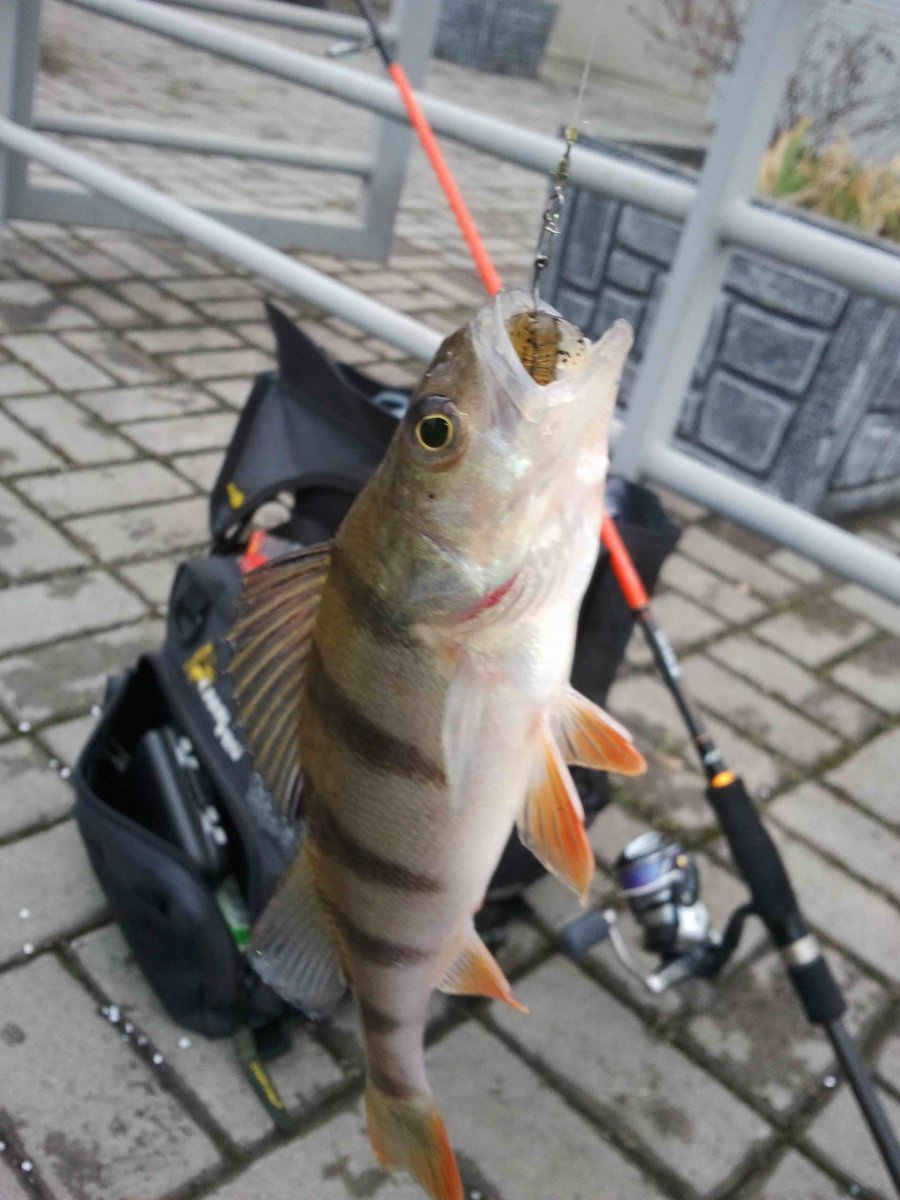 В субботу с 13-00 до 15-00 выскочил на набережную, тепло но ветер просто не давал спокойно половить, дождь то начнется то притихнет короче была возможность проверить когда лучше клев перед дождем или после. В бой пошел рак-криветка от Рейнз 2" и видать не промахнулся, поклевки были достаточно сильными, что-бы ощутить их сквозь ветер и таким образом было изловлено немного окуней 8 из которых (самый большой был 320 грамм и два по 250 остальные поменьше) отправились домой, так как договорился с женой сварить ухи.