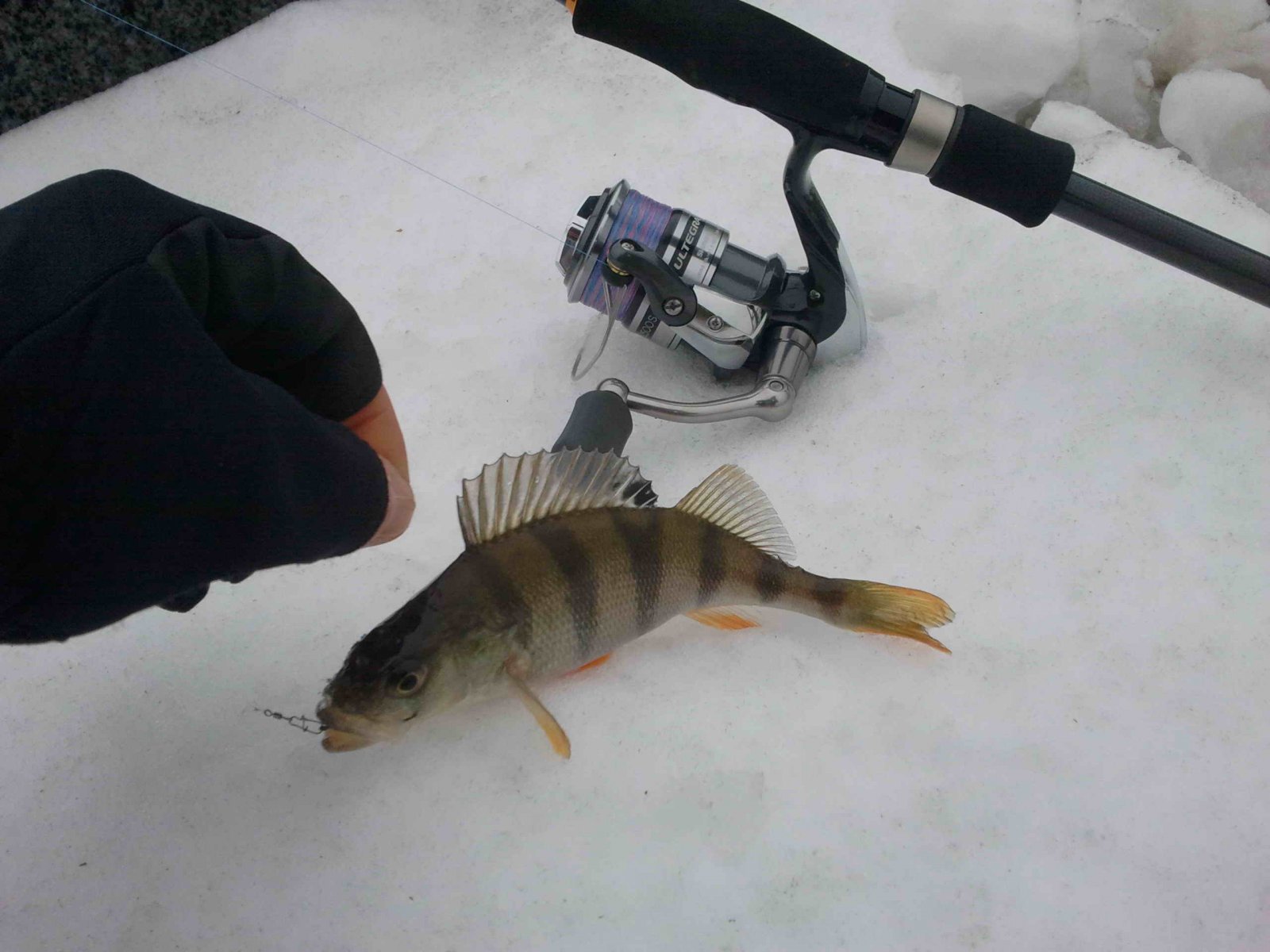 Итак 03.02.2013 решил пробежаться по набережной, ветер боковой, шквальный поетому решил укрыться на Комсомольском острове. Попав на остров сильно расстроился - со стороны правого берега сильное течение, ветер и ледоход не позволяющие провести приманку, а со стороны левого берега стоит лед. Жаль, но поизвращавшись немного побросал спиннинг, за час не видел ни одной поклевки, пробывал мелкожелезо и силикон - глухо. Сорвавшись с места пошел под новый мост в надежде поганять голавля. Прийдя на место вижу странную картину, народу человек 20, вся територия кафе "1001 ночь" и набережная в поплавочниках, ловят 200-грамового голавлика и очень активно, при этом из-за плотности населения путаются, матерятся, бухают и опять матеряться, находиться с таким рядом я не желал и взял курс на давно испробыванные места в район "Поплавка". Сильный ветер не вносил в процесс положительного, однако поиграв с размерами груза нашел то сочетание позволяющее провести приманку так как мне хотелось. И вот она долгожданная поклевка, правда весьма необычным для этого времени года методом, не тычек или потяжечка, а плотный жадный заглот Фото0013.jpg , ну потрадиции окушек прошел фотосесию и поплыл к родным. Дальше видать подобрав таки ключик за последующий час было изловленно 7-8 таких-же окушков отпущенных домой, получено порядка десяти холостых поклевок ну и обидный сход чего-то покрупнее (пишу и сам себе удивляюсь, вытягиваю-отпускаю-радуюсь, а сошла-расстроился-злюсь но ведь все-равно отпустил бы чего злиться, аж нет ЗЛЮСЬ).