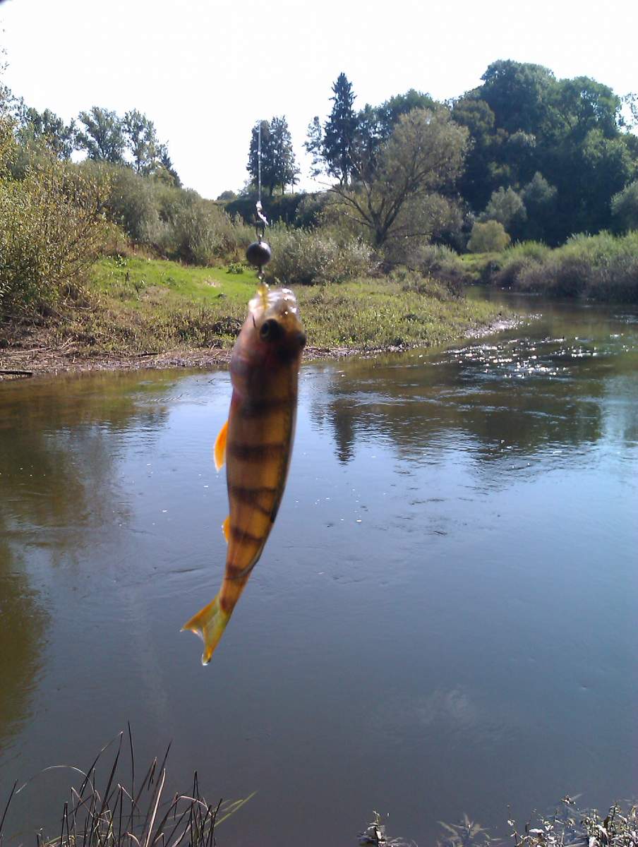 Сьогодні я з Миколою вирішили, зробити рибалку - розвідку, розвідати нові для себе місця. З самого ранку поїхали на річку в с. Тростянка, але побачили, що умови не підходять для МДЖ. (а іншого не хотілося :)), повернулись в с. Пятидні під міст, де я з першого закиду мав схід, з другого - невеличкого полосатого, з третього - вже залікового полосатого, четвертого - теж залікового, а п"ятий заброс приніс мені невеличкого піскаря :) і покльовки закінчились, Микола поки міняв приманки, то встиг витягнути лише одного, вирушили вниз по течії, де Микола взяв ще одного горбача. Бачили як з води випригувала не мала рибина. Вернулись знову під міст, але там вже були бракошикі з телевізорами, які побачивши нас швидко зібрались, але вже розлякали окуня :(, раз вже в П"ятиднях, то вирішили зміститись вверх по течії, але знову ж таки умови нам не дали покидати, вернулись до машини, яку залишили біля Пятиденського ставка, хоч рибалка там заборонена, ми все ж таки вирішили спробувати, але вже на першій проводці, до нас підїхав сторож. і вічливо попросив....... Потім зупинились на заплаві озера Лісного, і як не дивно за годину часу я отримав лише дві покльовки і один схід, повертаючись назад ще закинув в саме Озеро Лісне (через забор :стыдно:) де за декілька проводок піймав два спортивних окунця, і мав ще два схода, через те що забор далеко поставили від води :) Потім повернулися в місто, і зупинились на плотіні біля Білих Берегів, де я спіймав ще одного полосатого, (дуже багато волосся в воді не дає до дна впасти джизі). Потім поїхали на міський пляж, де немали навіть покльовок (мабуть окунь змістився, через зниження рівня води). Далі поїхали на Зимненський пляж, де Микола заробив покльовку. Вирішили ще спробувати в районі школи-інтернату, але знову ж таки велика "волосатість" річки нам не дала покидати. Повертаючись додому стали біля річки Риловиця (права притока Луги) річка (точніше струмок) ширина якої в деяких місцях не перевищує 50 см., а глибина максимум метр і за 30 хв. рибалки я отримав 6 покльовок, які принесли мені ще декілька полосатих хвостів. (рибу з Риловиці не брав, і нікому не раджу:)) Микола теж відловився.